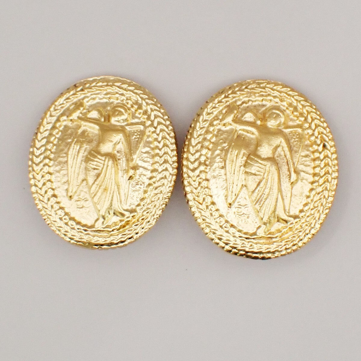 Chanel clips bouton ovale ange logo Gold-plated