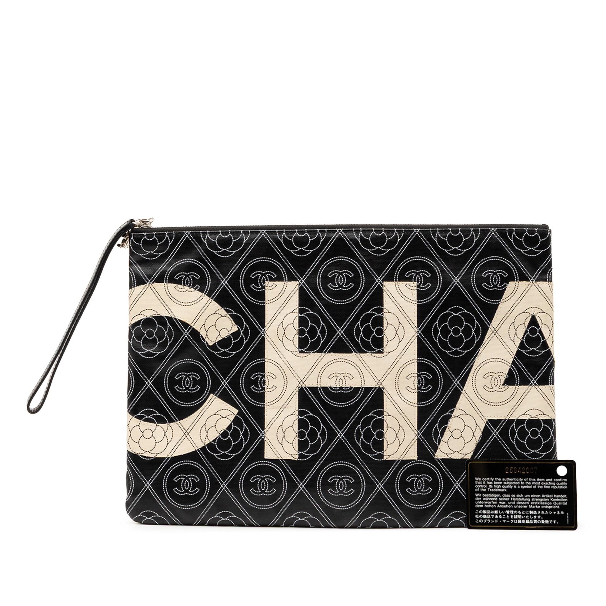 Chanel Coated Canvas Camellia Logo Wristlet Clutch Secondhand