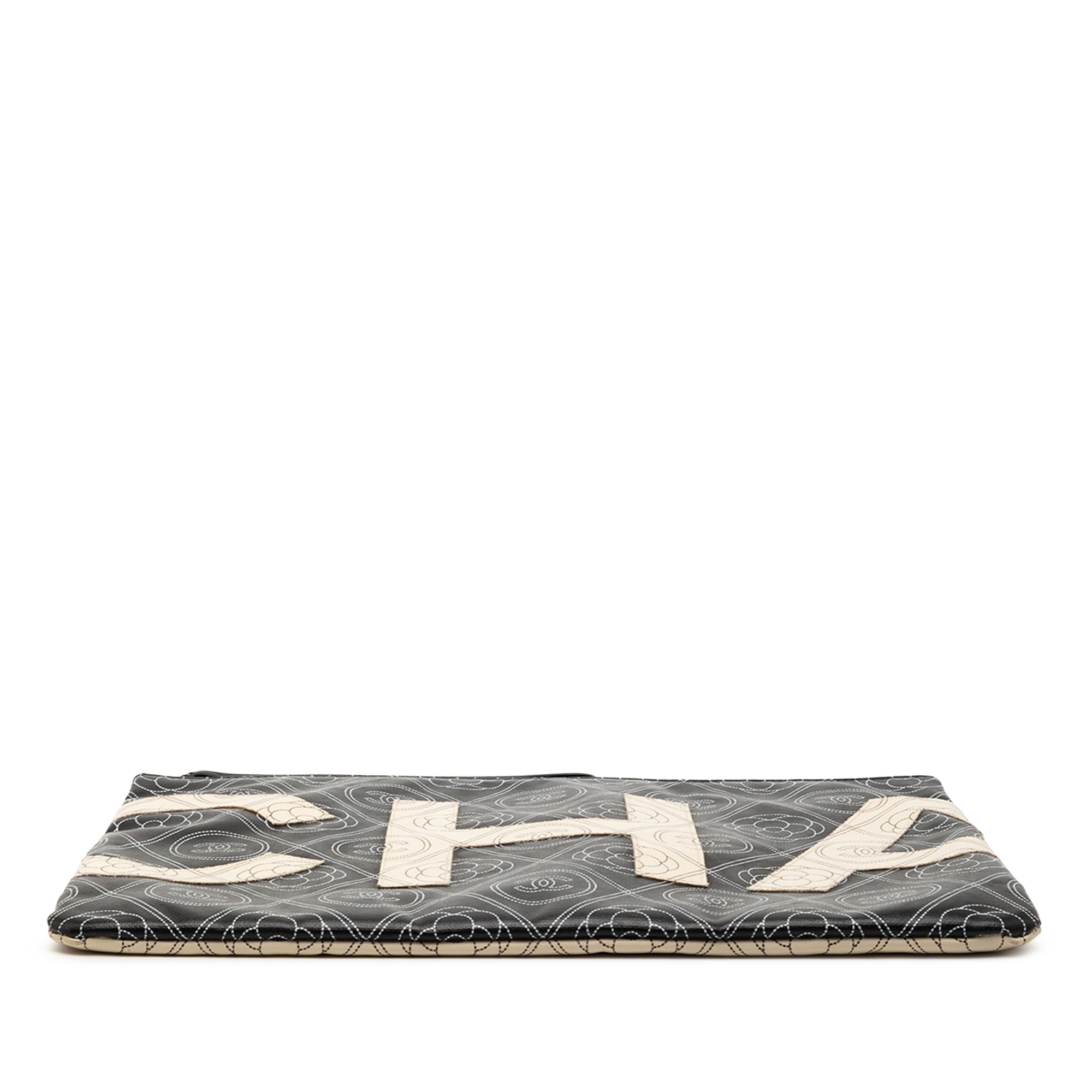 Chanel Coated Canvas Camellia Logo Wristlet Clutch