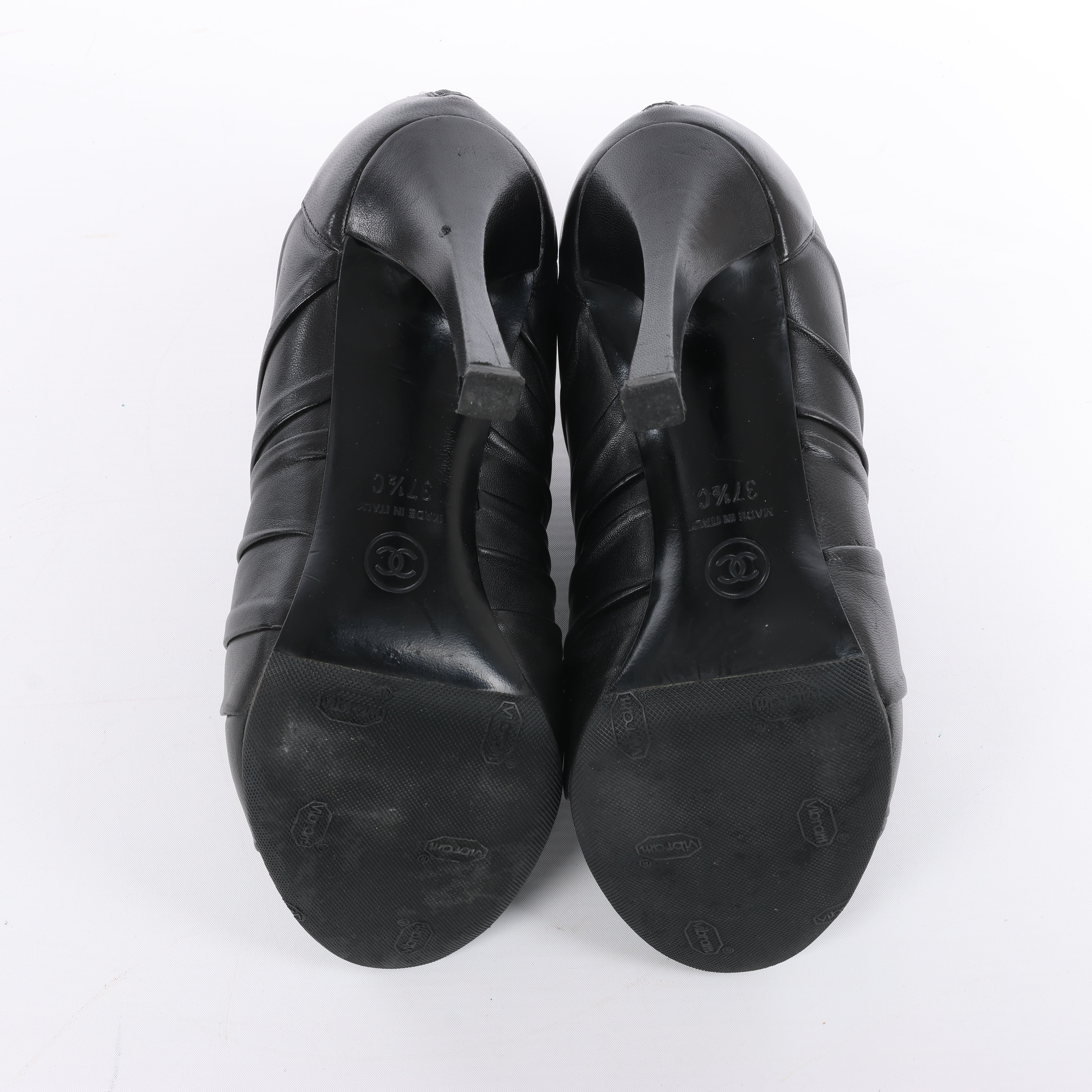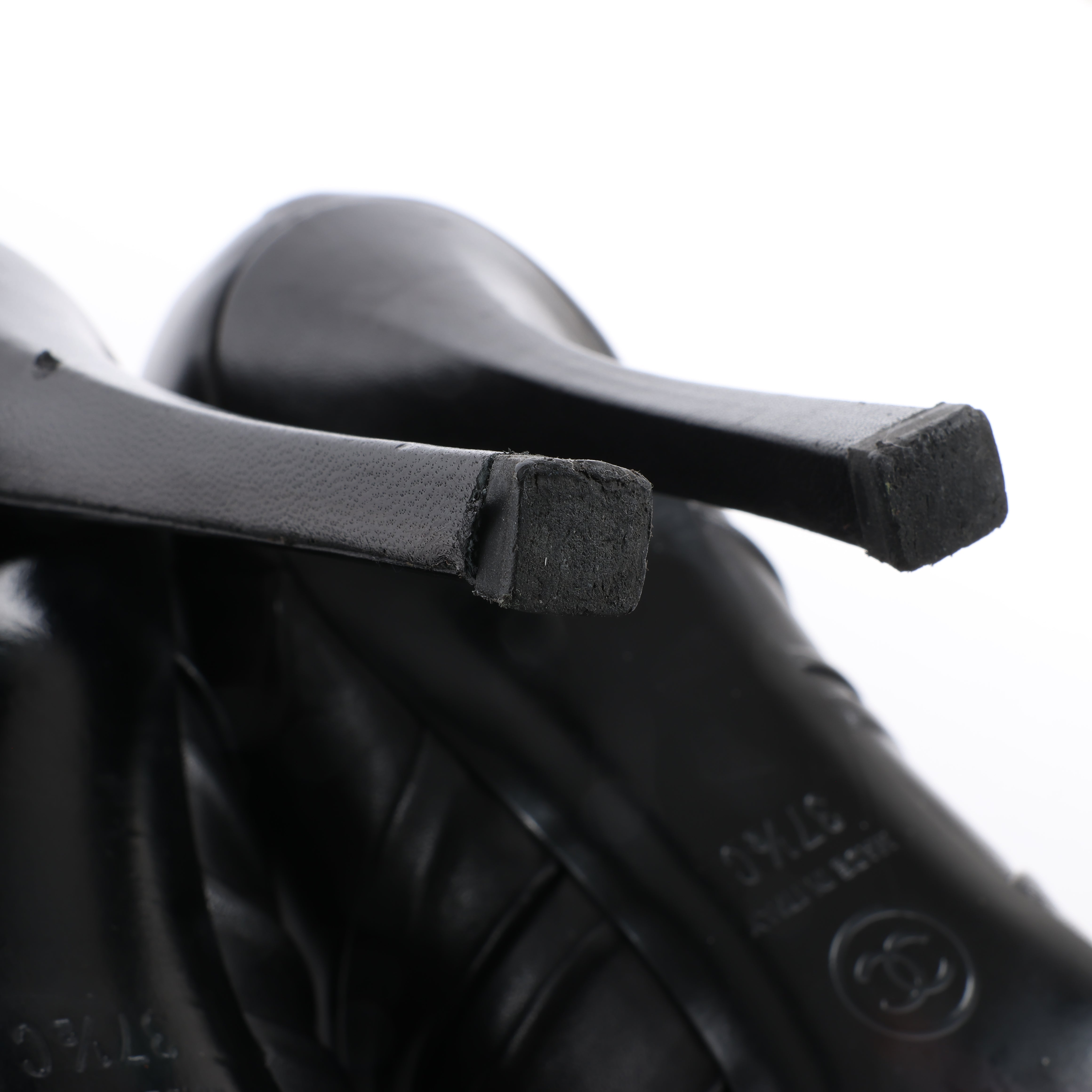 Brand: ChanelSize: EU 37.5 CHeel Height: 10.5 cmShaft: 7.5 cmCondition: ExcellentCondition Details: Has light crease, scratches and signs of use on outsoleMain Colour: BlackColours: -Main material: LeatherMaterials: -Product Code: G28629Manufactured In: ItalyComes With: -