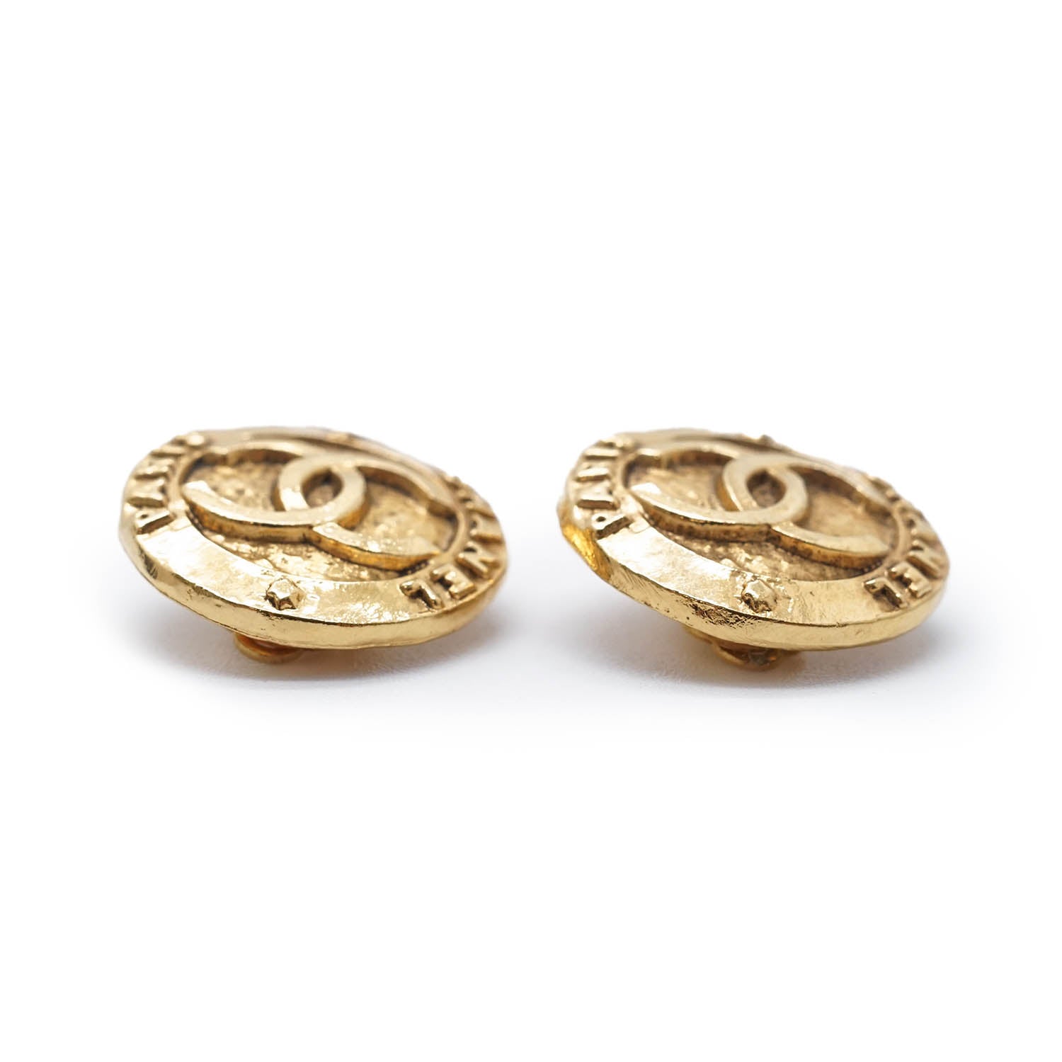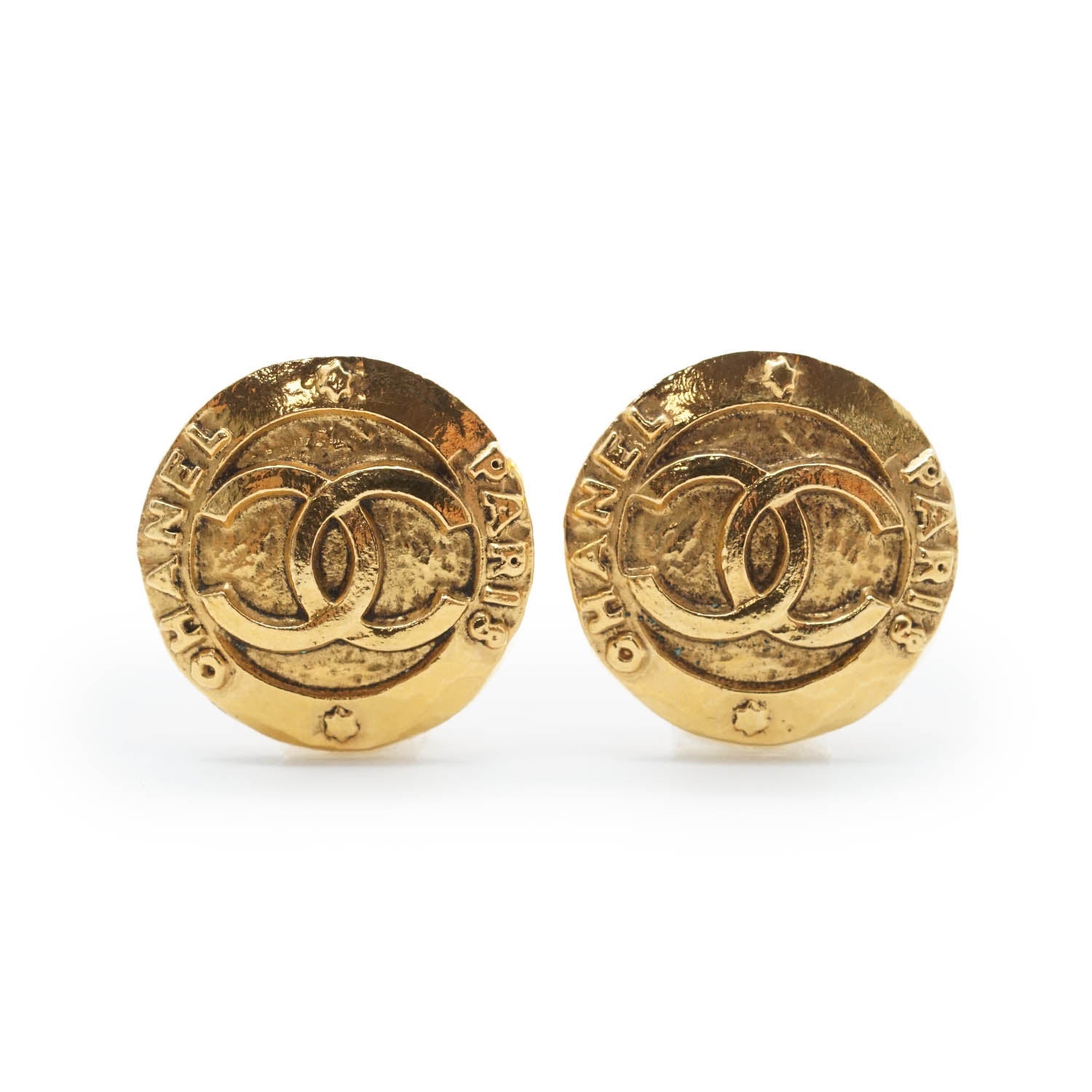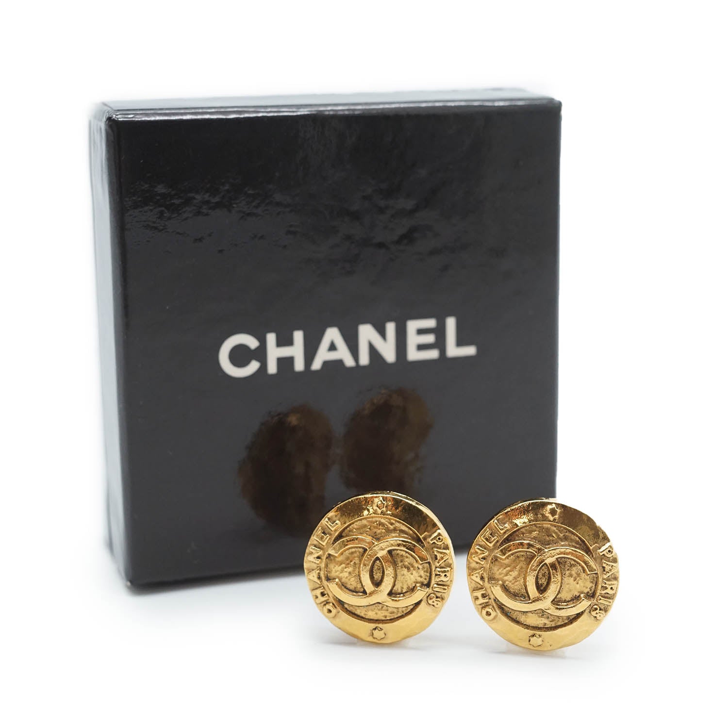 Chanel Coco Mark Chanel Paris Round Clip Earrings GP