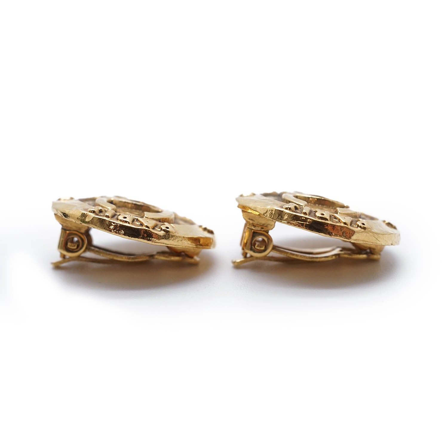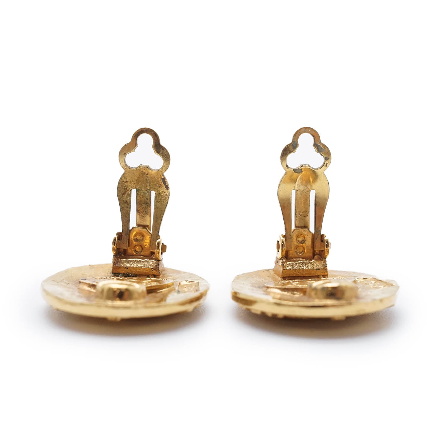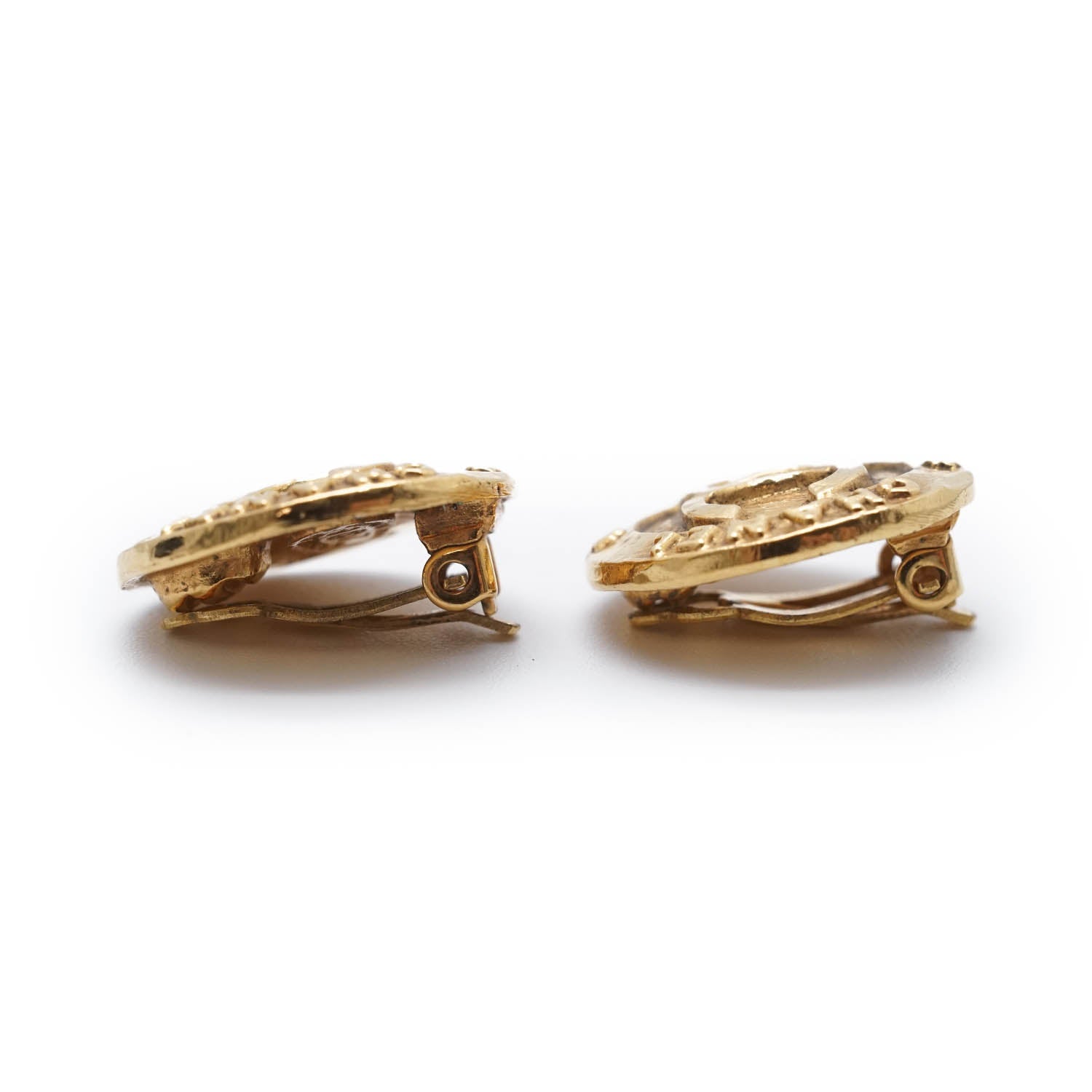 Chanel Coco Mark Chanel Paris Round Clip Earrings GP