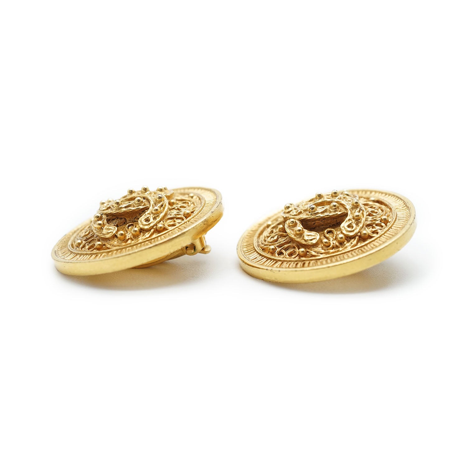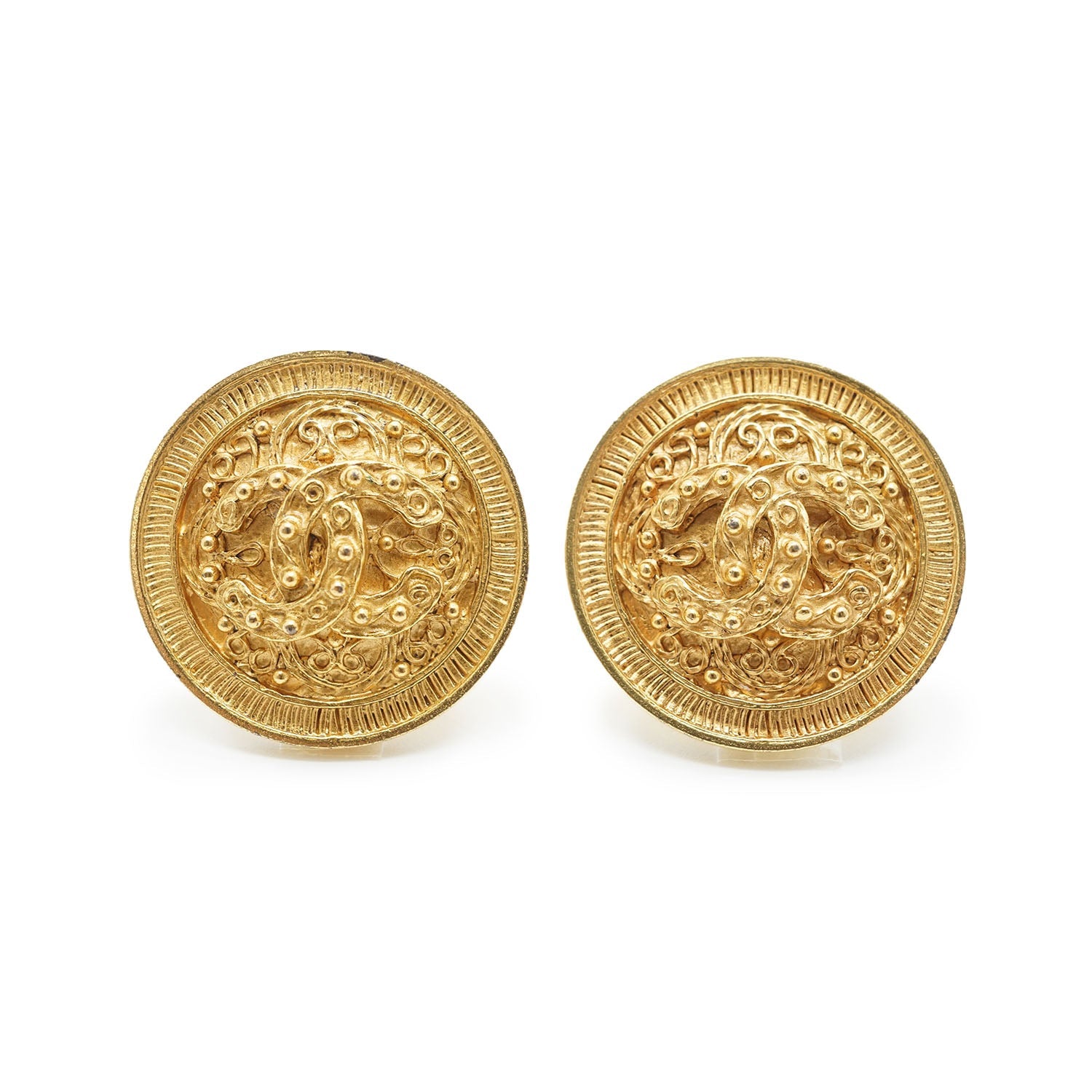 Chanel Coco Mark Filigree Round Clip Earrings GP
