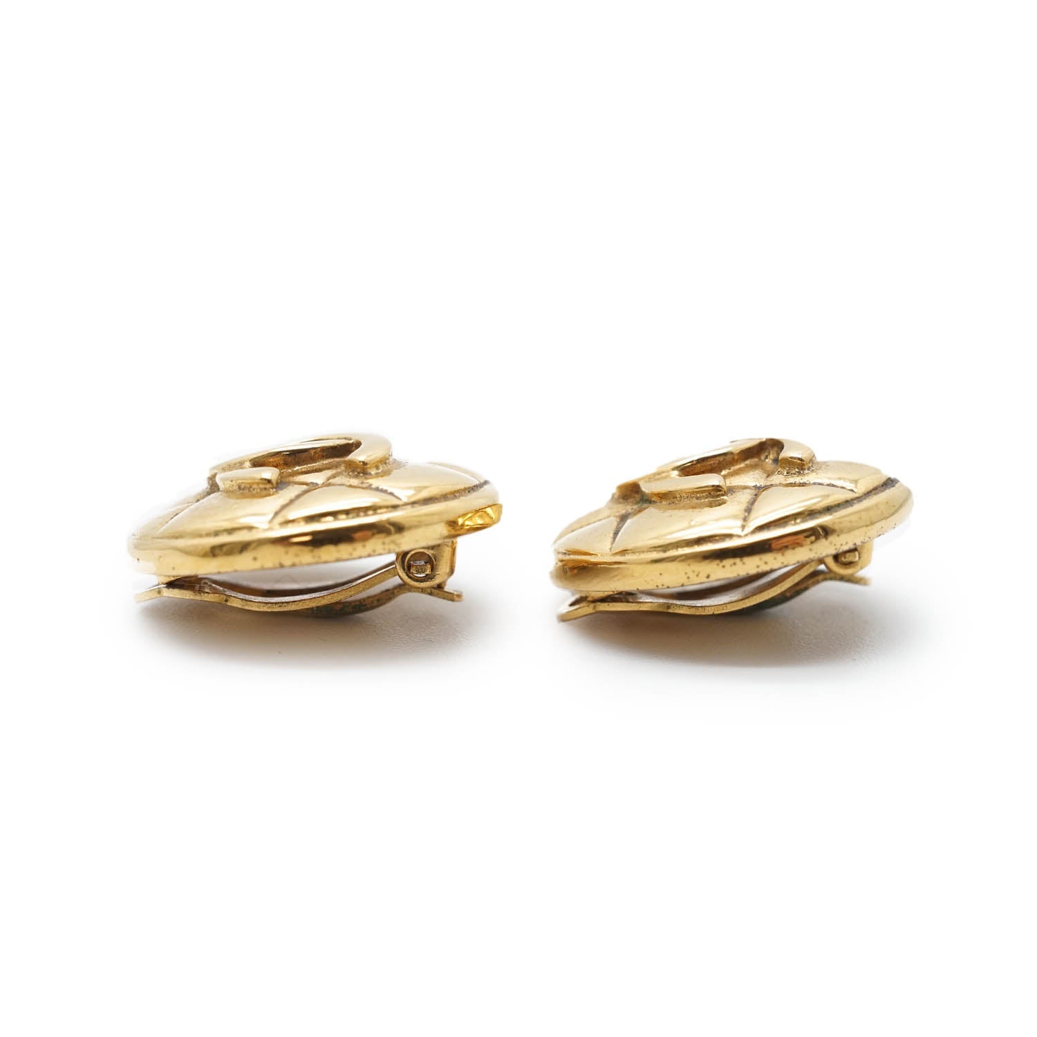 Coco Mark Matelasse Round Clip Earrings GP Gold BrassDepth: 0.5cmHeight: 2.3cmWidth: 2.2cmDiscoloration: Some tarnishing (front, back)Worn: Minimal signs of wear overallComments: The logo stamp on the back plate of one earrings is slightly fading SKU: 7050098