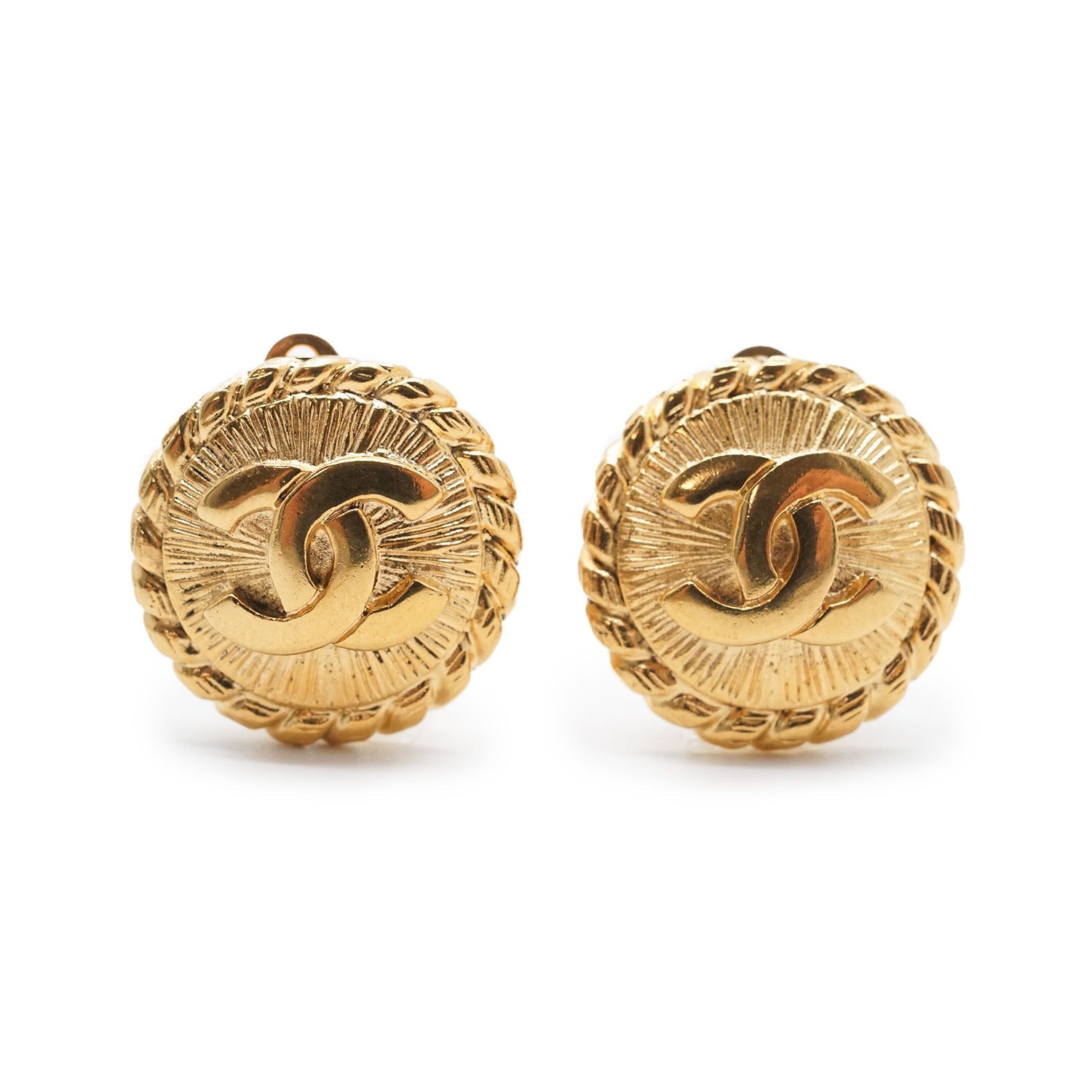 Coco Mark Round Clip Earrings GP Gold BrassDepth: 0.5cmHeight: 2cmWidth: 2cmDiscoloration: Slight tarnishWorn: Minor signs of wear on the back of both earringsComments: The back logo plates are slightly fadingSerial code: 2400SKU: 7060159