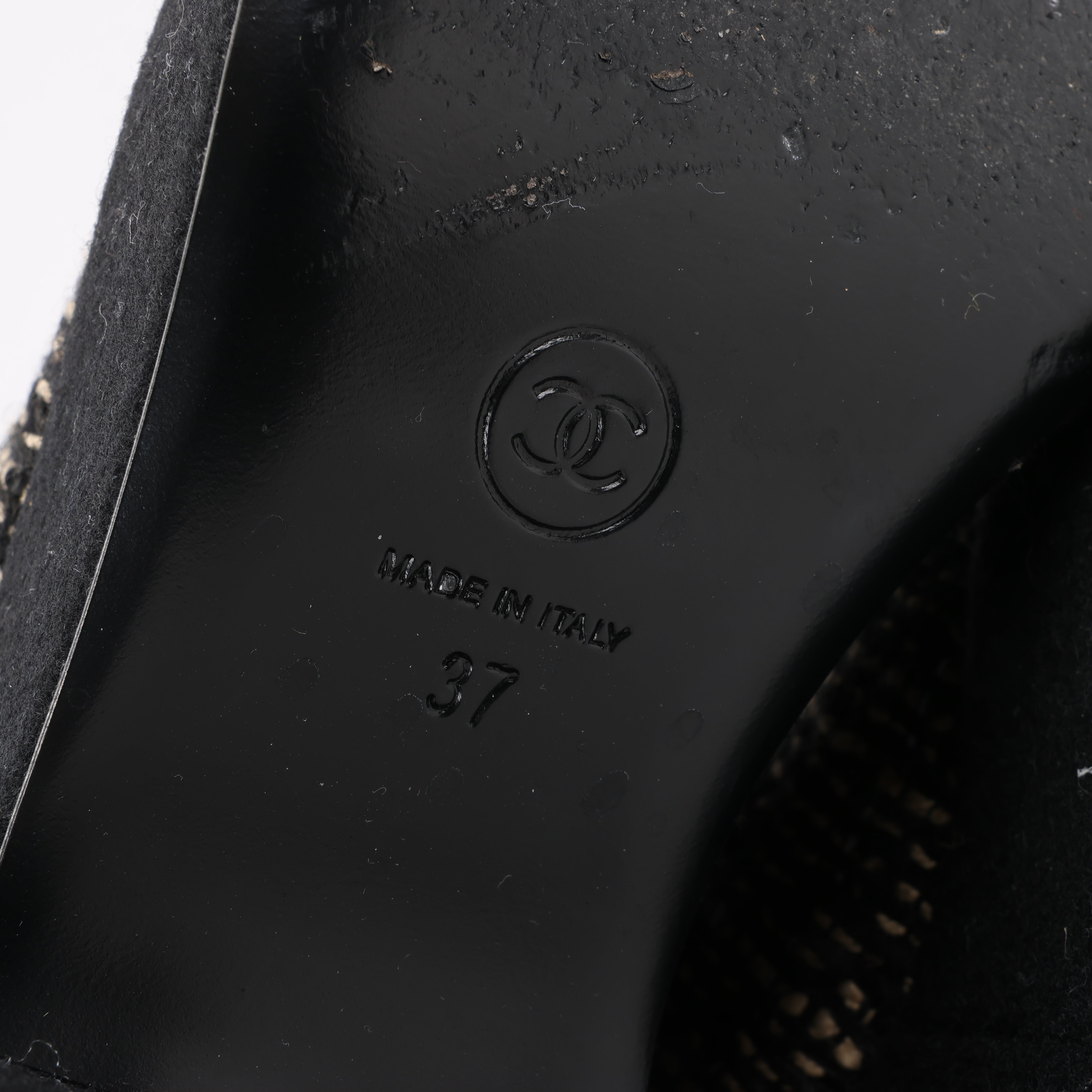 Brand: ChanelSize: EU 37Heel: 7 cmPlatform: 3.5 cmCondition: ExcellentCondition Details: Exterior has some dust, outsole has signs of usage and insole has some rubbings.Main Colour: BlackColours: BeigeMain material: ClothMaterials: LeatherProduct Code: G31378 Manufactured In: ItalyComes With: Dustbag