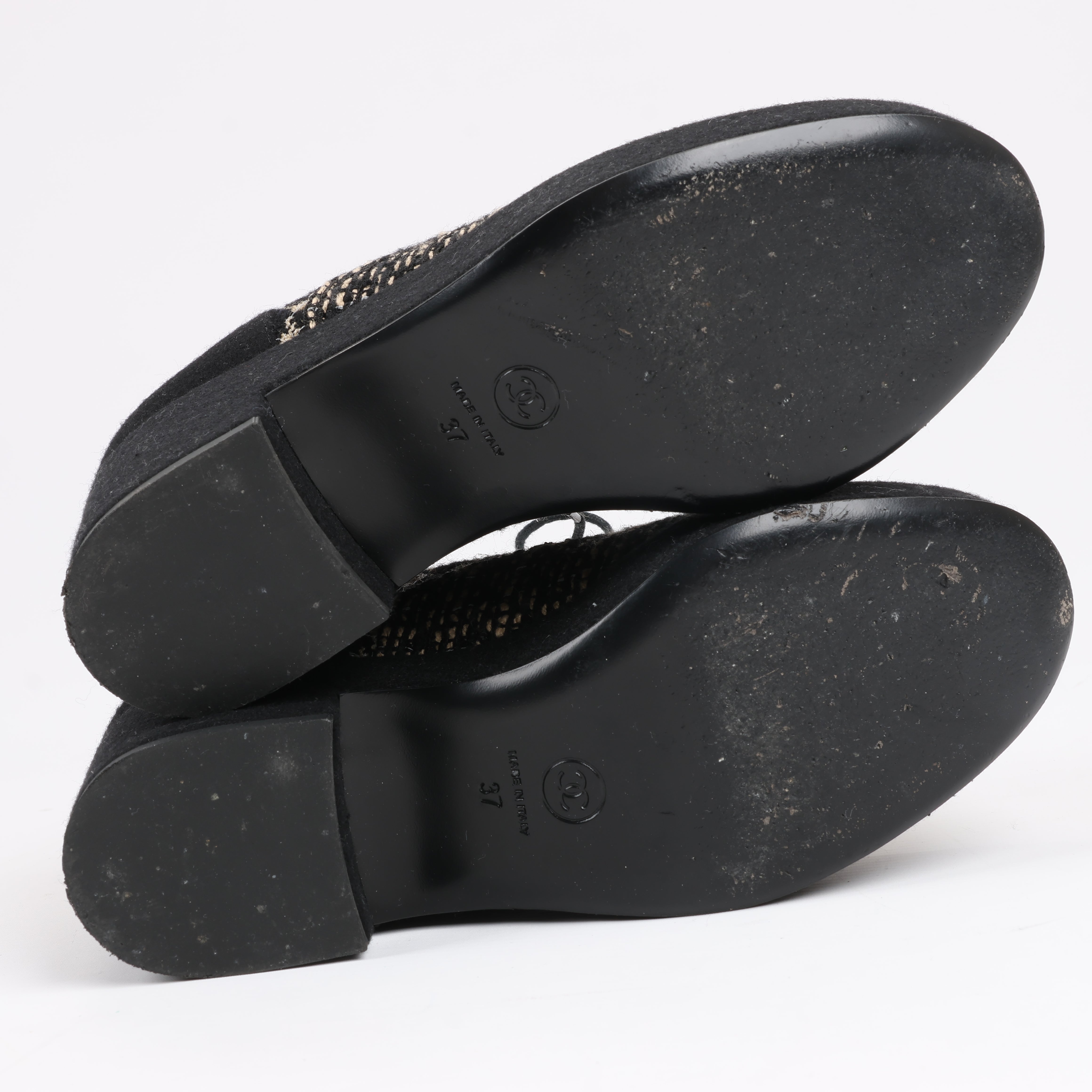 CHANEL Coco Tweed Felt Mark Leather x Fabric Boots G31378 in Black x Beige, Size 37 EU