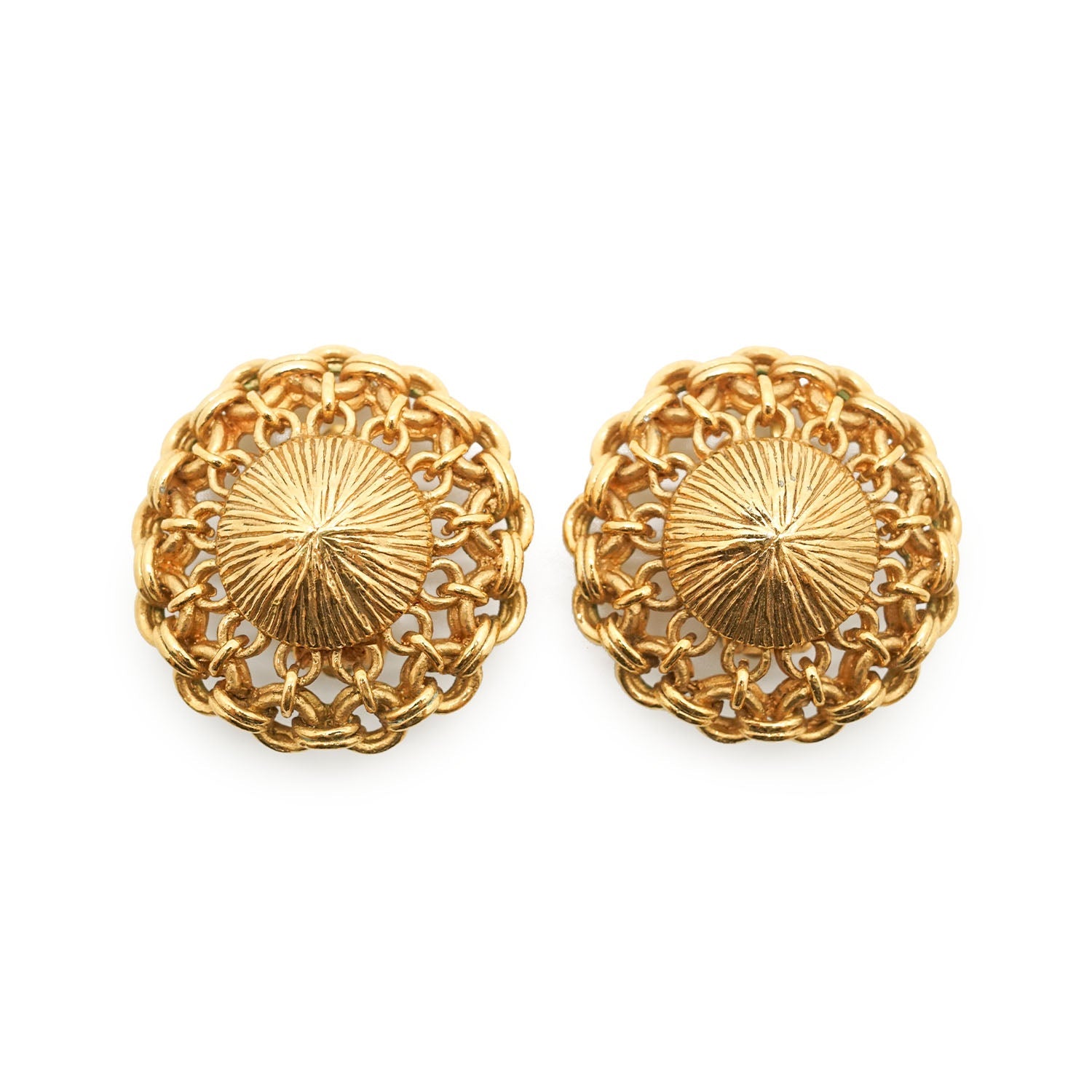 Chanel Cut-out Chain Detail Domed Round Clip-On Earrings GP