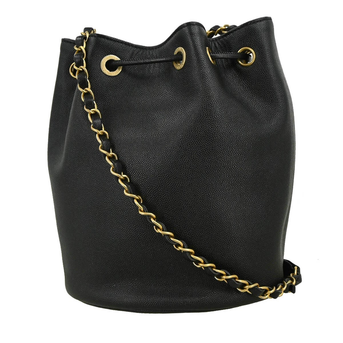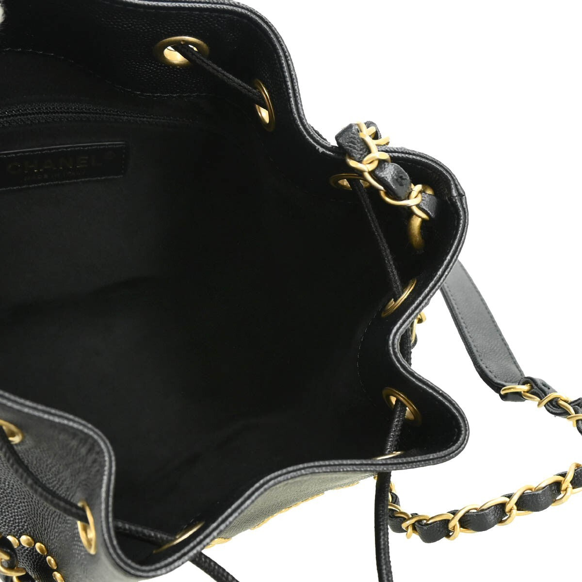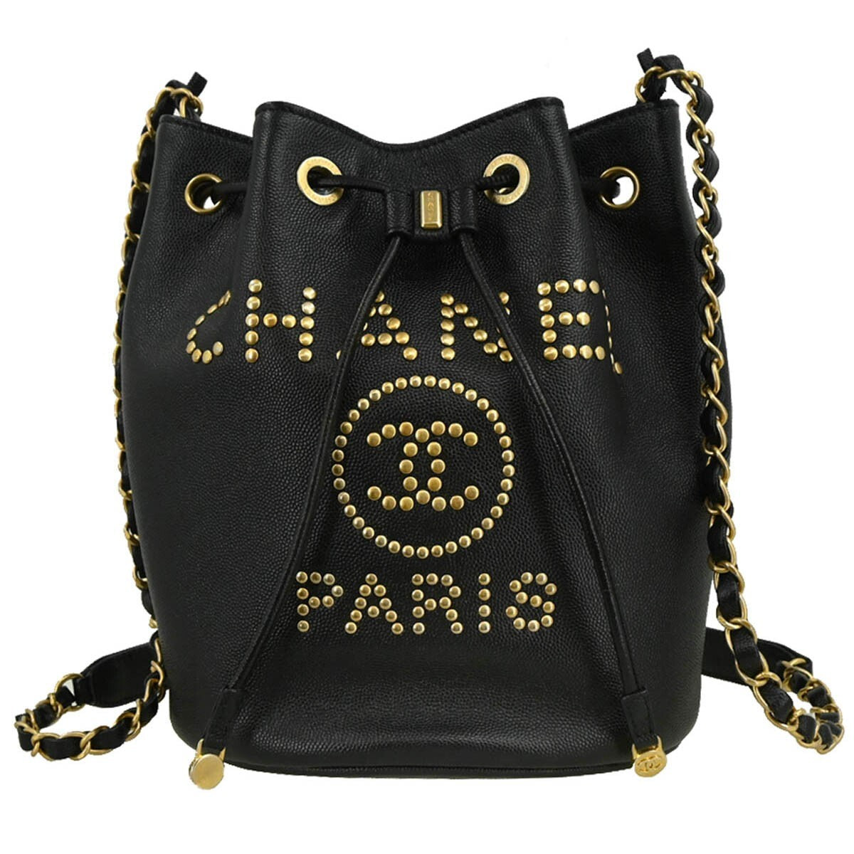 Chanel Deauville Drawstring Bucket Bag Studded Caviar