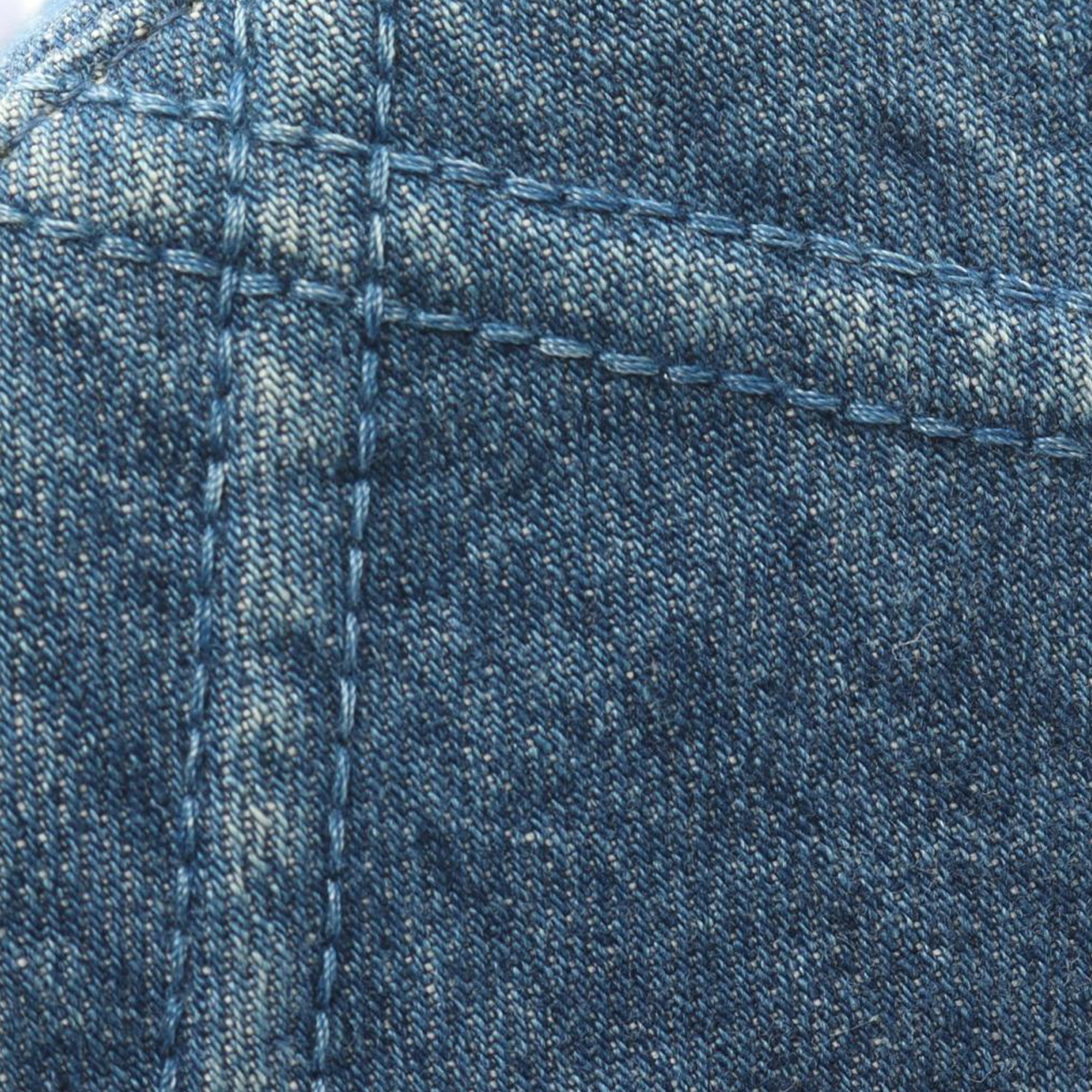 This satchel features a denim body, a chain-link handle, a leather-woven chain strap with leather guard, a top zip closure, and interior slip pockets. Retail Price: 4500.00