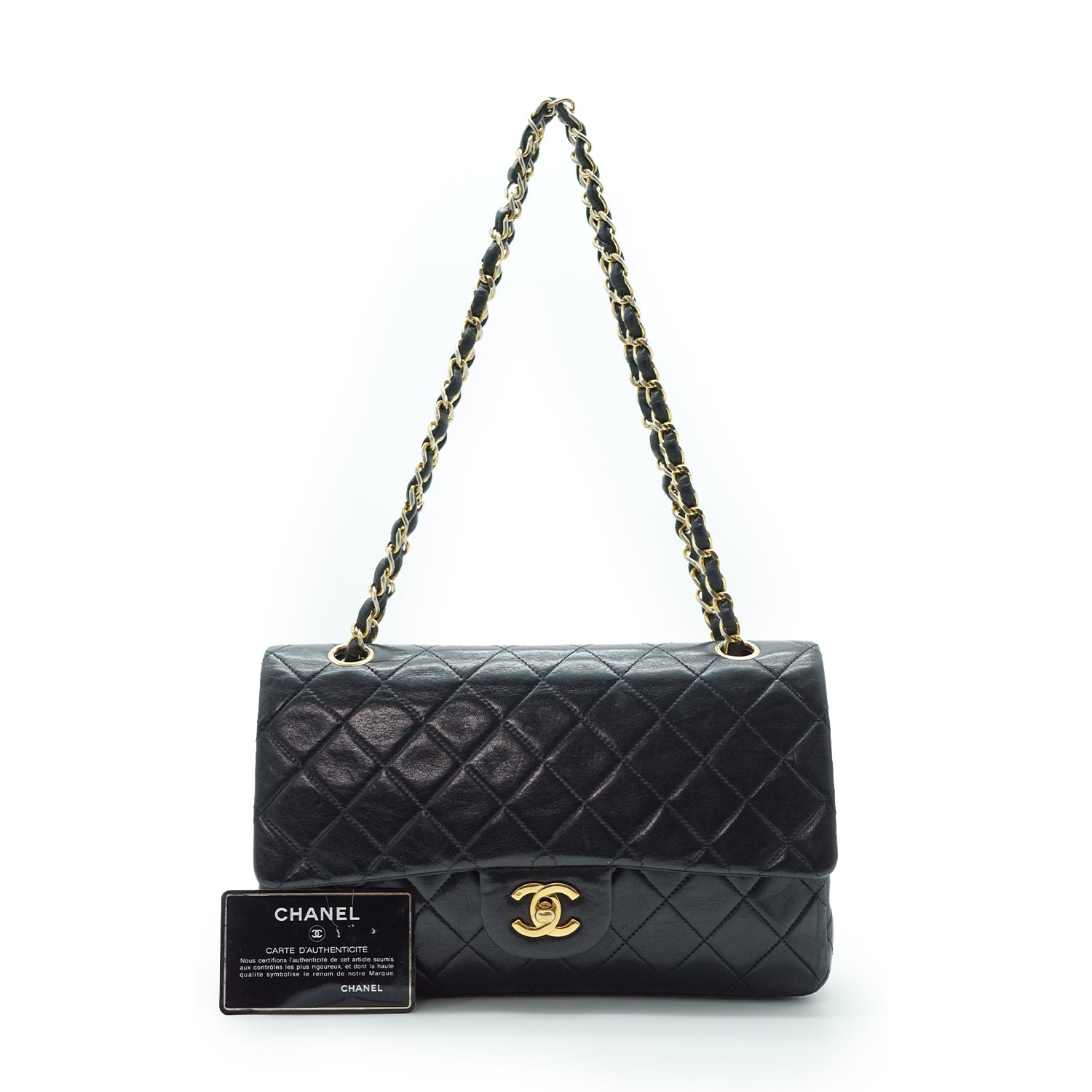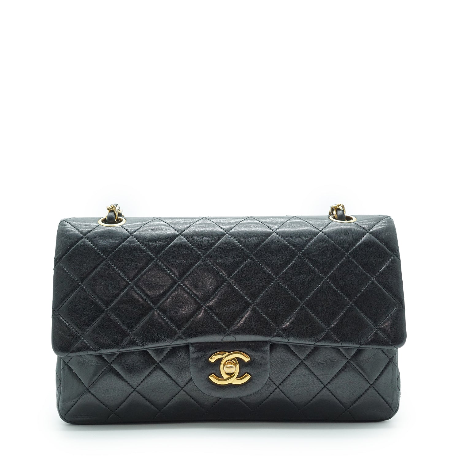 Double Flap Matelasse 25 Lambskin Chain Shoulder Bag Black LeatherDepth: 7cmHeight: 16.5cmWidth: 25.5cmShoulder Drop: 44cmHand Drop: 24cmStain: Minor pen marks on the insideScratch: Slight rubbing along the corners, slight scratches on the hardware, some scratches throughout the insideInclude: Authenticity cardSerial code: 0809641
