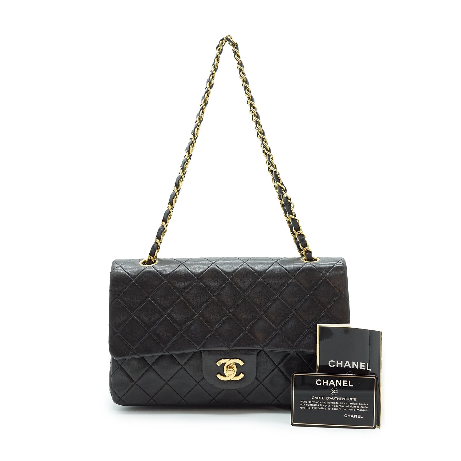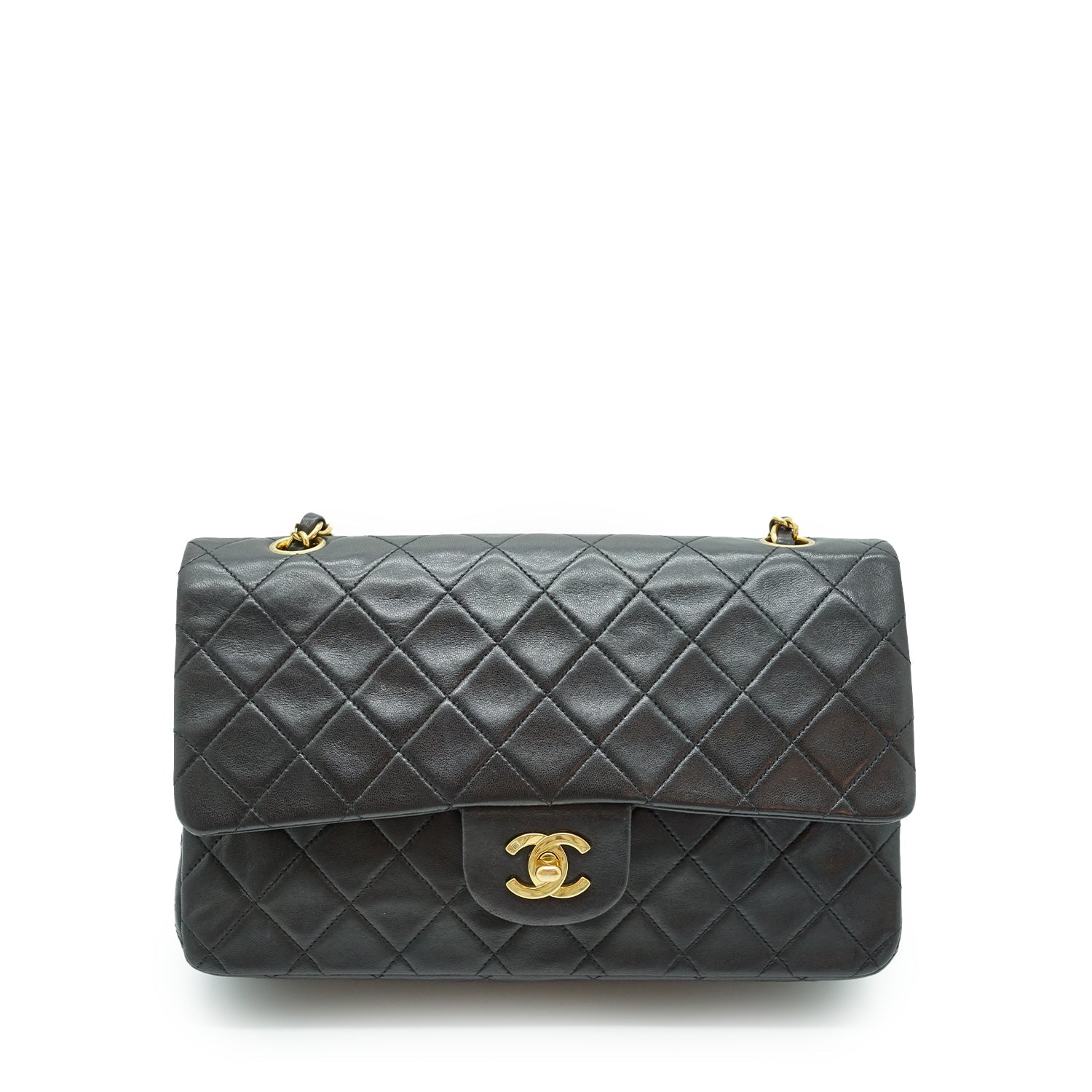 Double Flap Matelasse 25 Lambskin Chain Shoulder Bag Black LeatherDepth: 7cmHeight: 16cmWidth: 25.5cmShoulder Drop: 43.5cmHand Drop: 23.5cmScratch: Minor scratches/indentation marks on the insideInclude: Authenticity card, care guideSerial code: 3049312