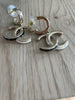 Chanel drop earrings. champagne gold metal. black and white edges. about 4*2cm. punch present. sold in a neutral box. excellent condition