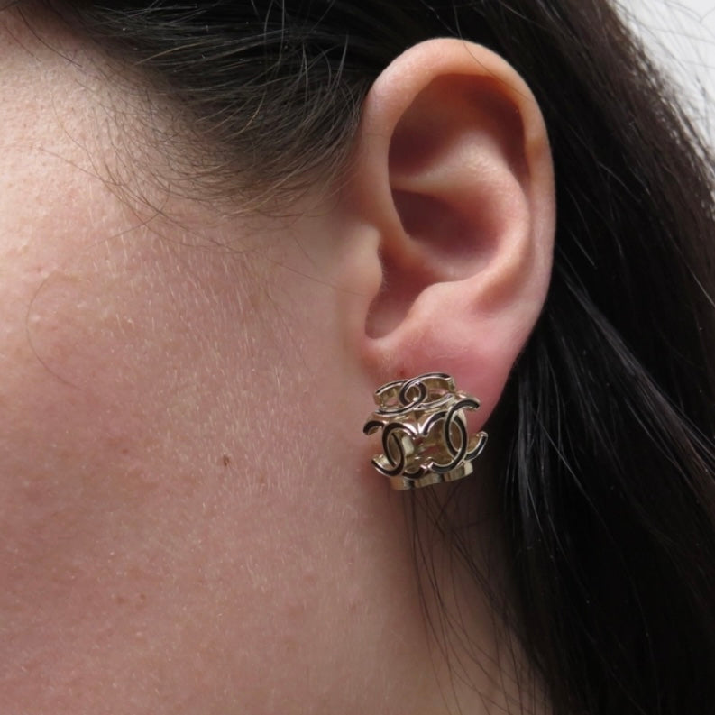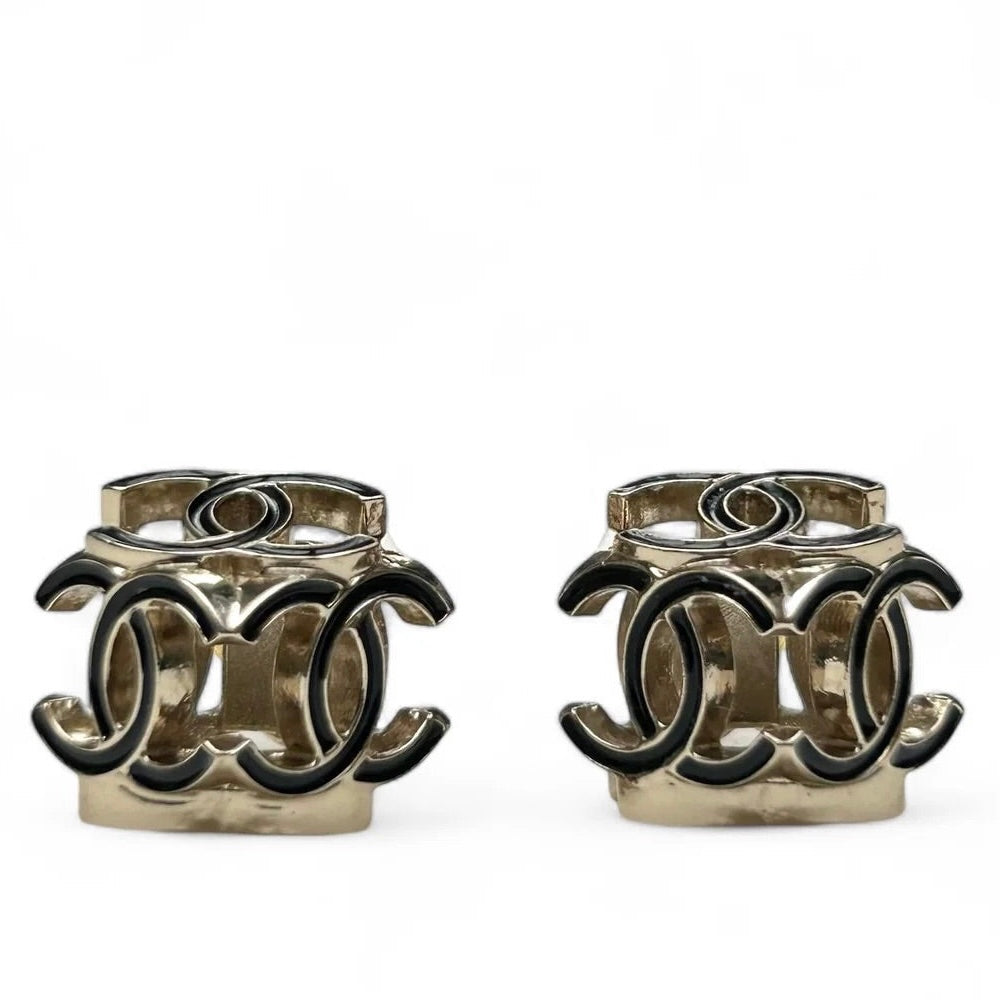 Chanel cube earrings. Gold and black. Hallmark present on the back. Weight (in gr): 7.2. Dimensions: Length (mm): 15.4 Width (mm): 12.2. Very good condition. Sold in a neutral box