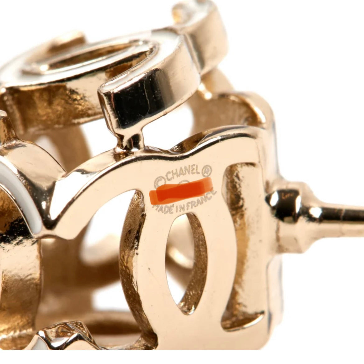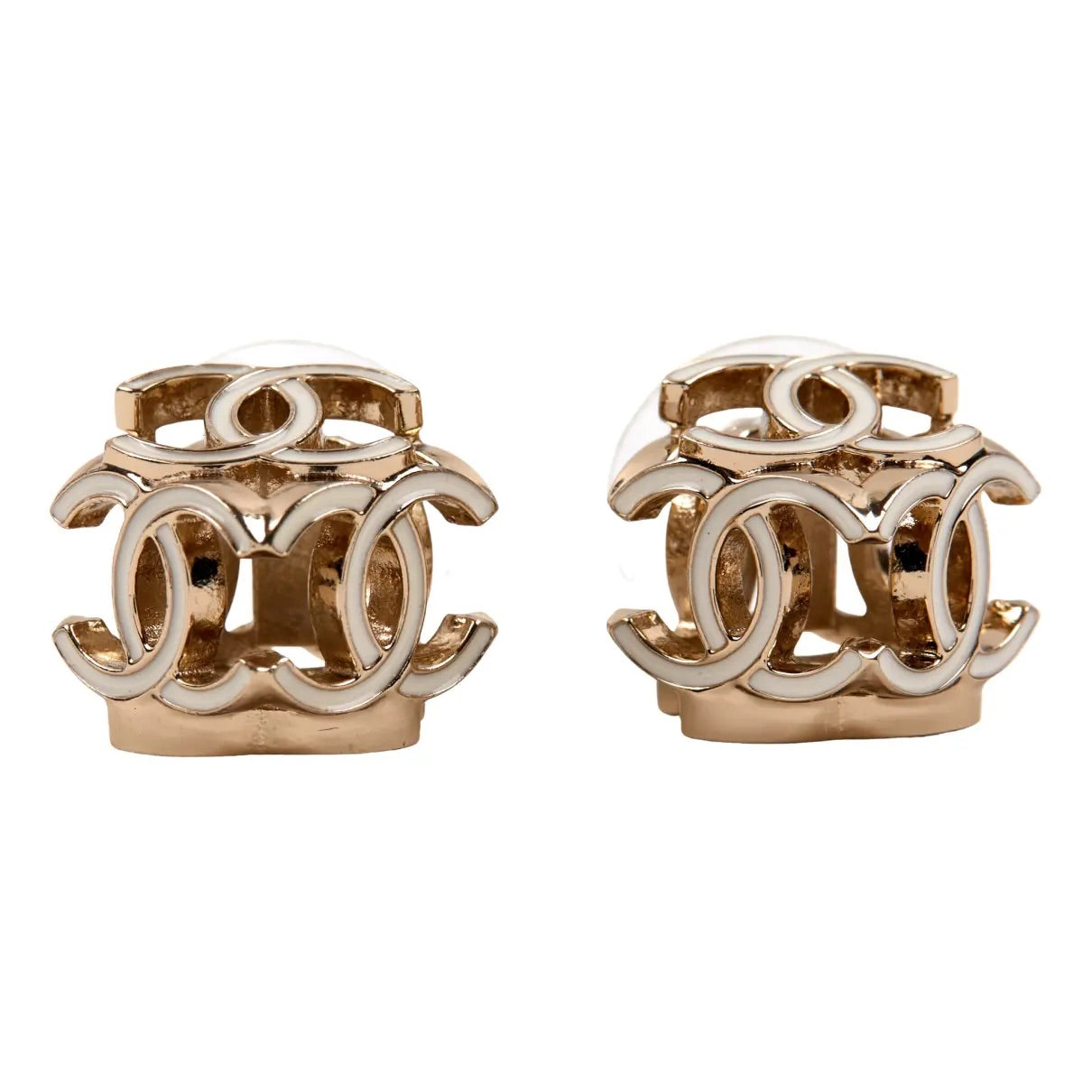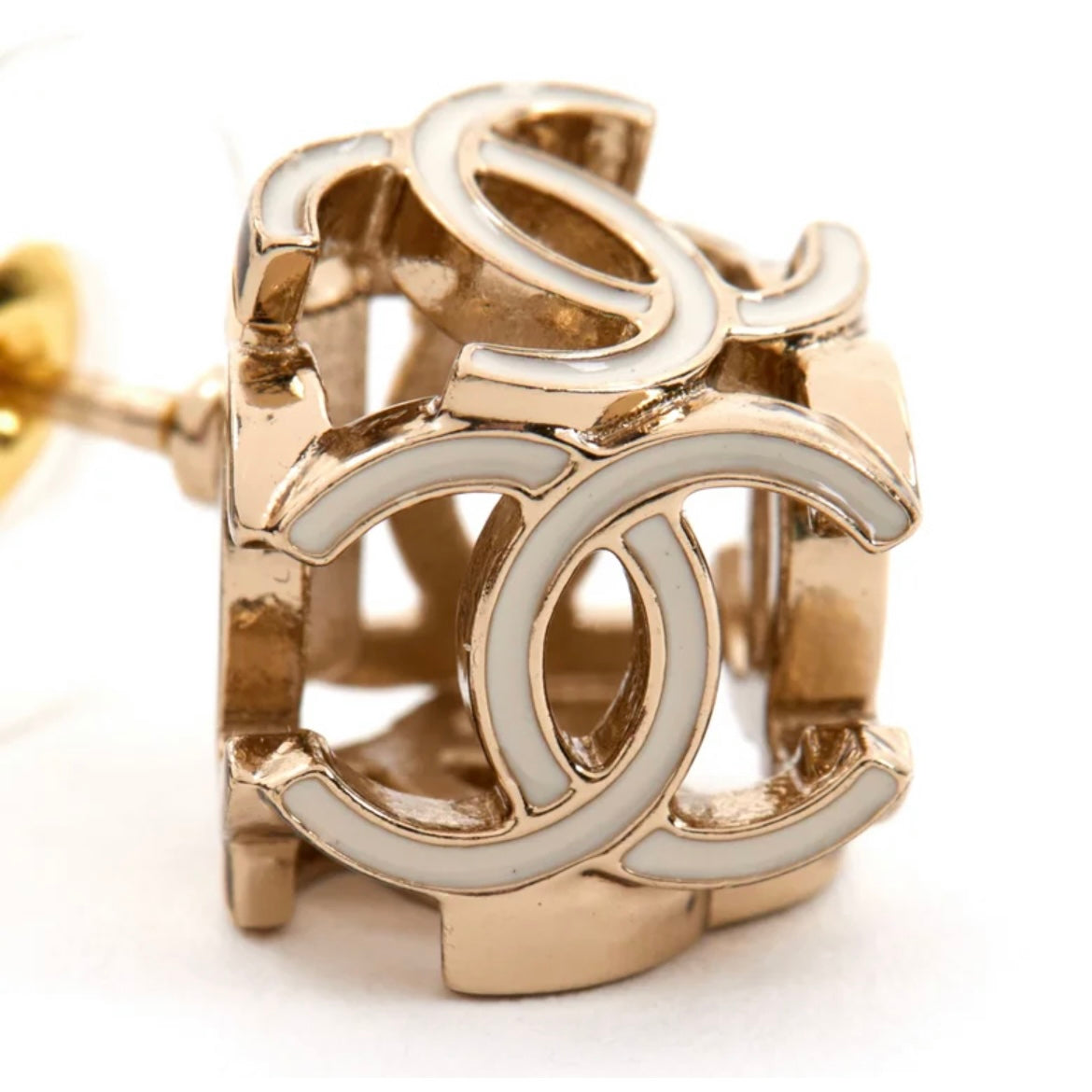 Chanel cube earrings. Gold and white. Hallmark present on the back. Weight (in gr): 7.2. Dimensions: Length (mm): 15.4 Width (mm): 12.2. Very good condition. Sold in a neutral box