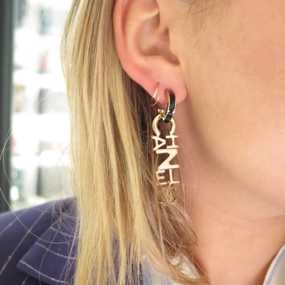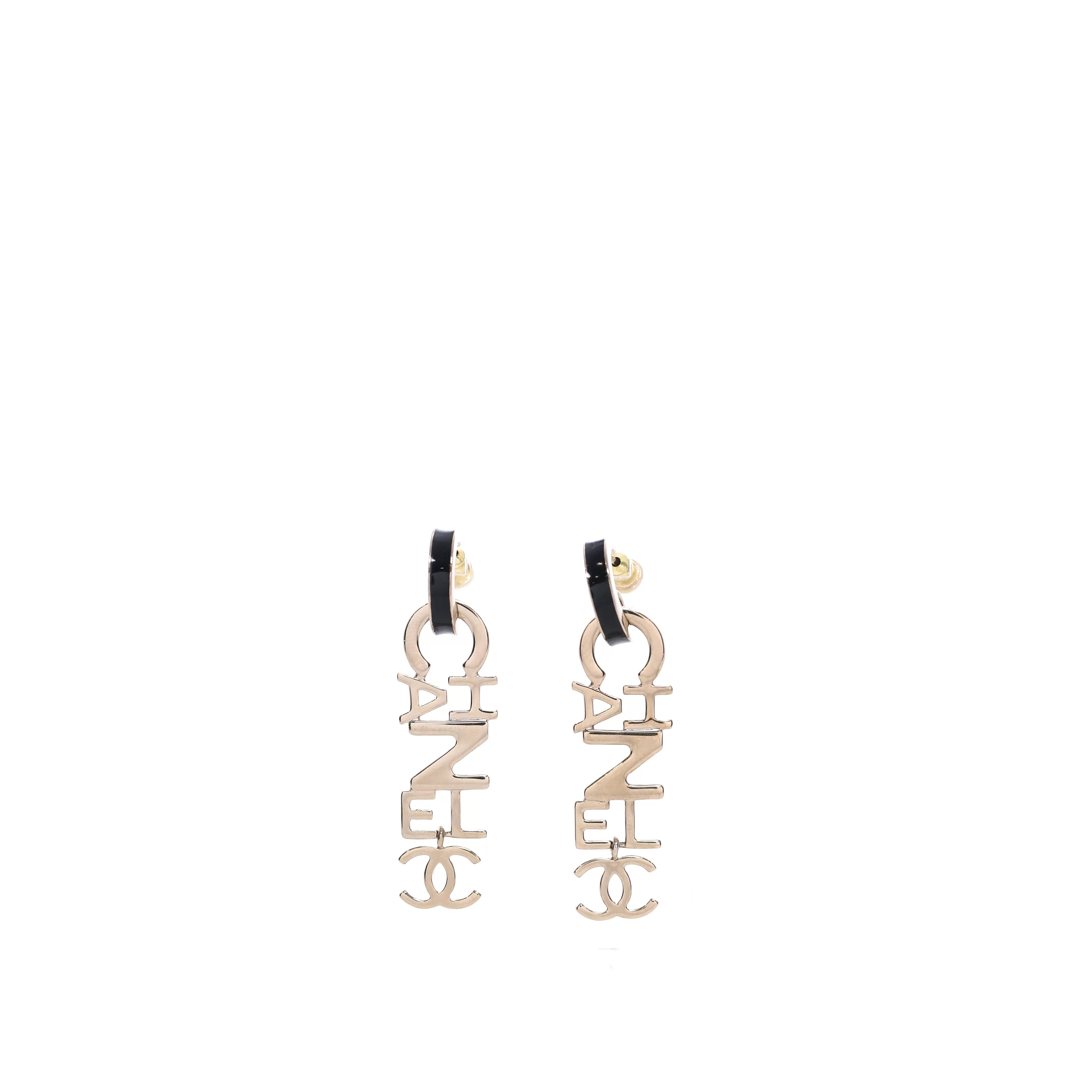 Logo letter dangle earrings Brand: Chanel Model: CC Material: Metal Color: Gold and black Dimension: 5*2cm Hallmark present Excellent condition Sold in a neutral box