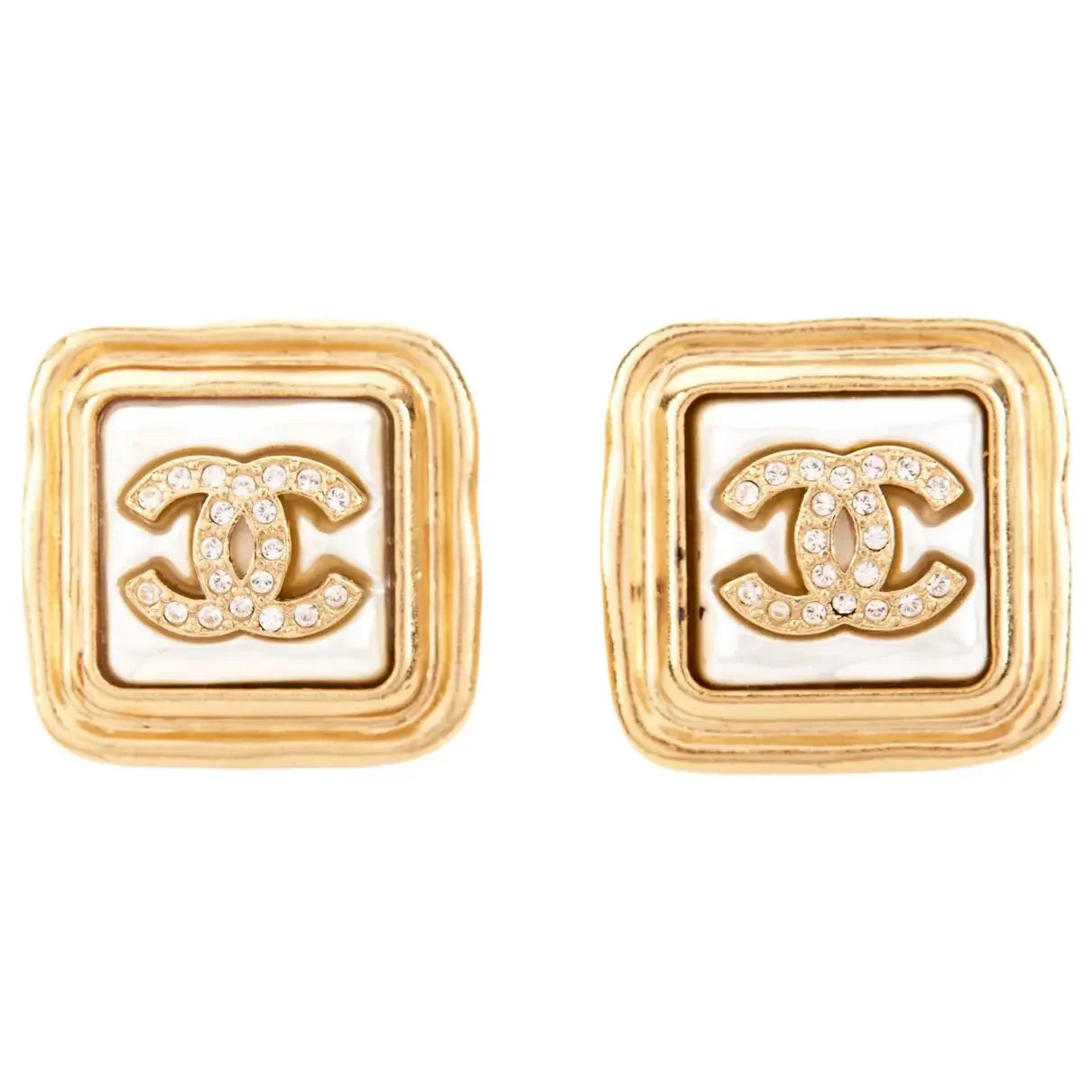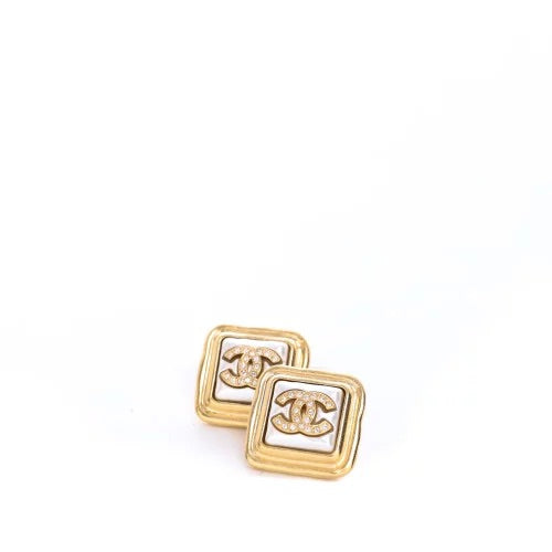 Square earrings Brand: Chanel Model: CC Material: Metal Color: Gold and mother-of-pearl Dimension: 1.8*1.8cm Hallmark present Excellent condition Sold in a neutral box