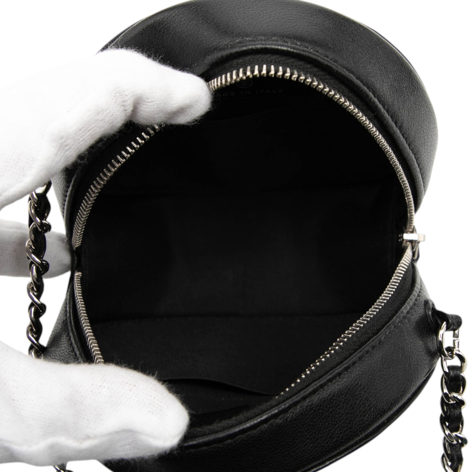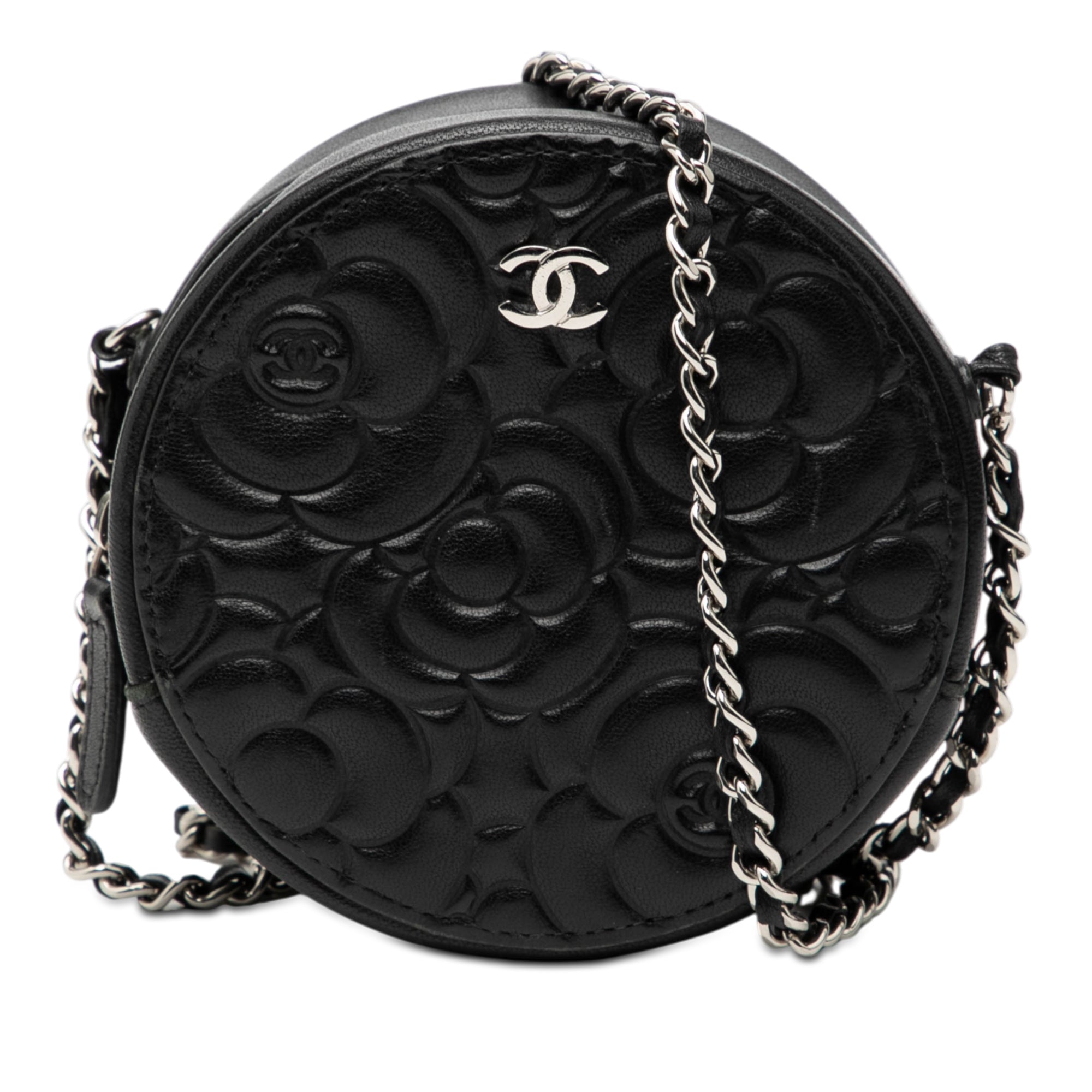 This crossbody features an embossed goatskin leather body, a silver-tone leather woven chain link shoulder strap, a top zip closure, and interior slip pockets. Retail Price: 2900.00