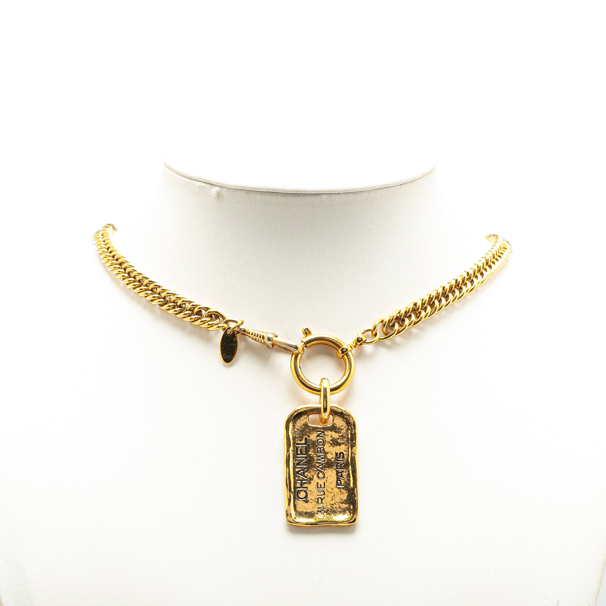 Chanel Gold Plated 31 Rue Cambon Dog Tag Pendant Necklace