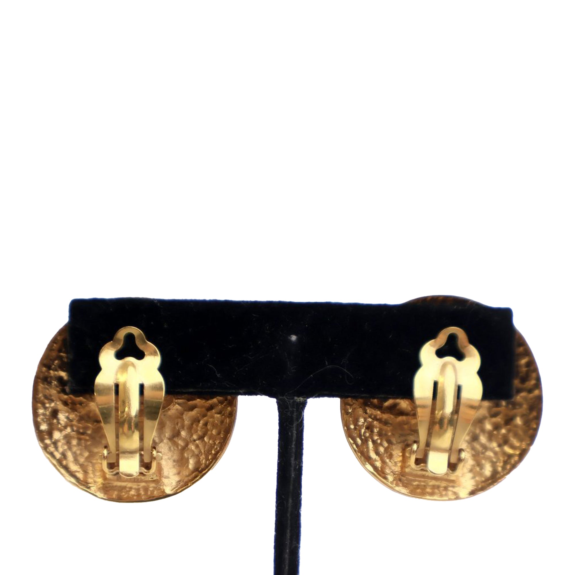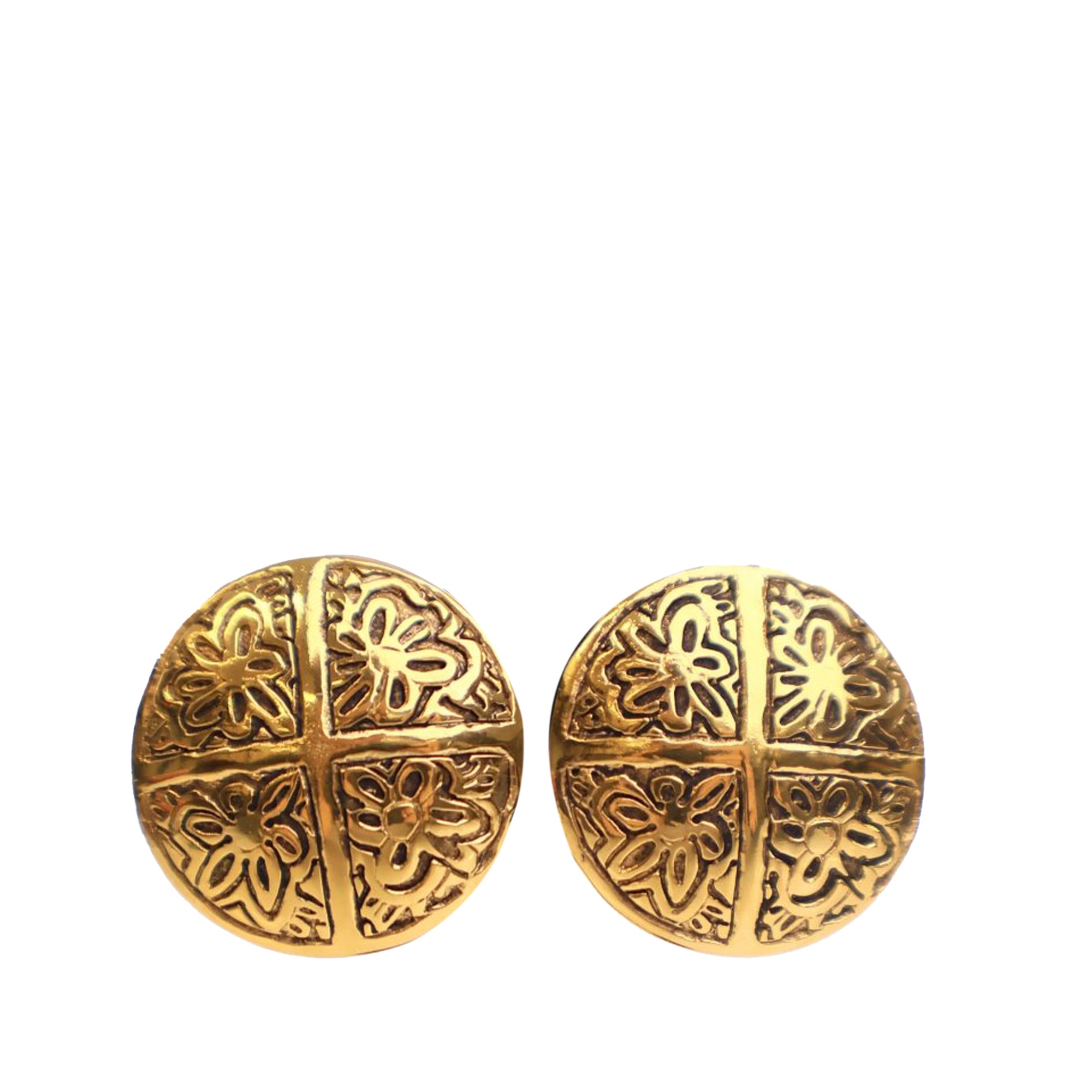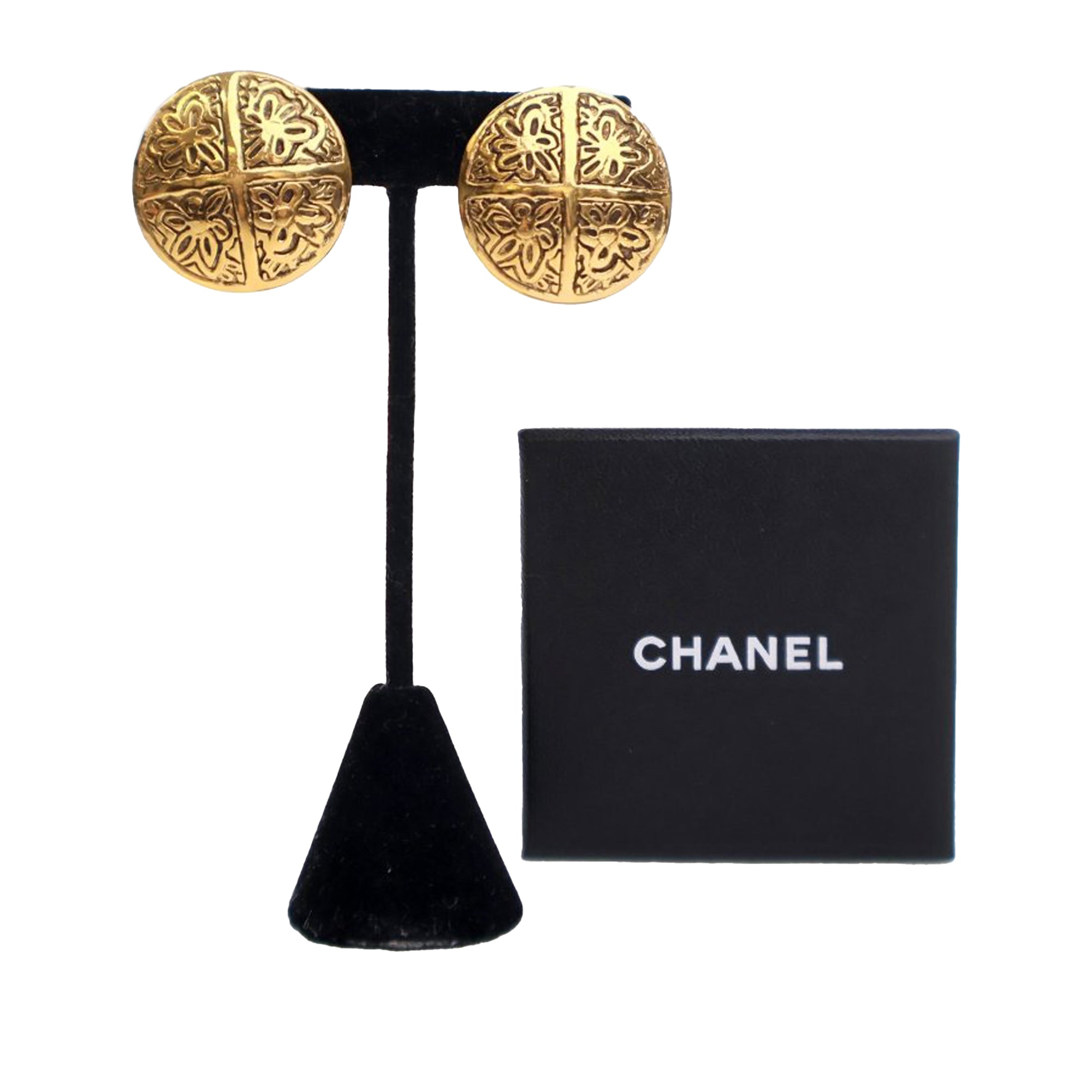 Chanel Gold Plated Camellia Cross Dome Clip on Earrings