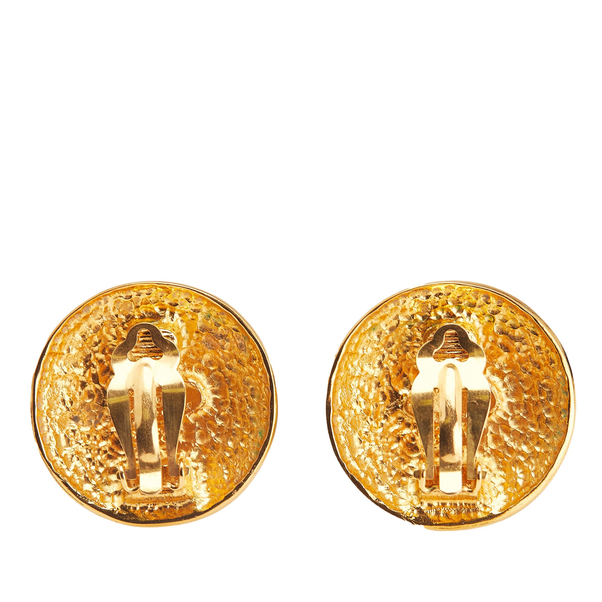 These earrings feature gold plated metal bodies and clip on closures. Inclusion: box. Retail Price: 900.00