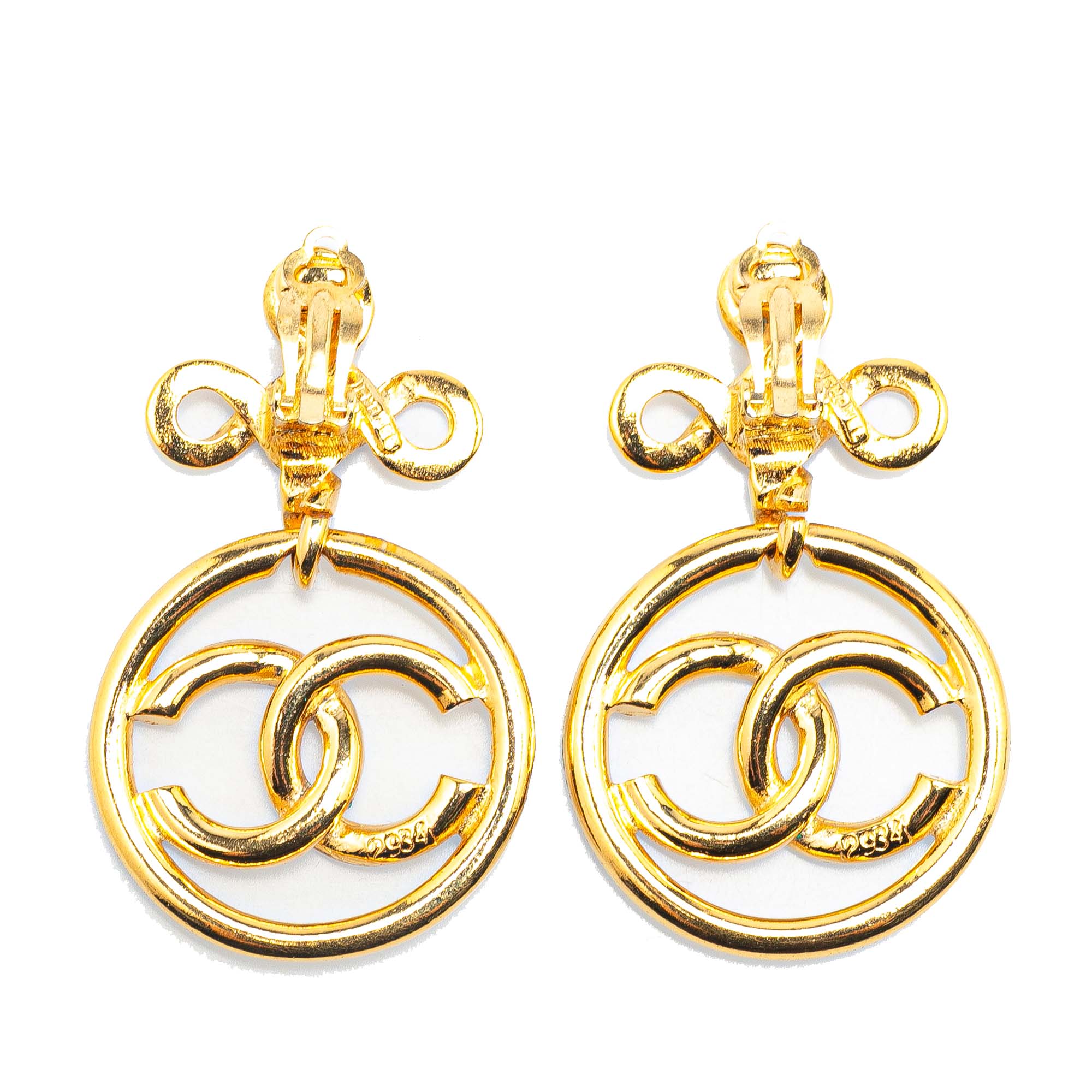 Chanel Gold Plated CC Drop Clip-On Earrings