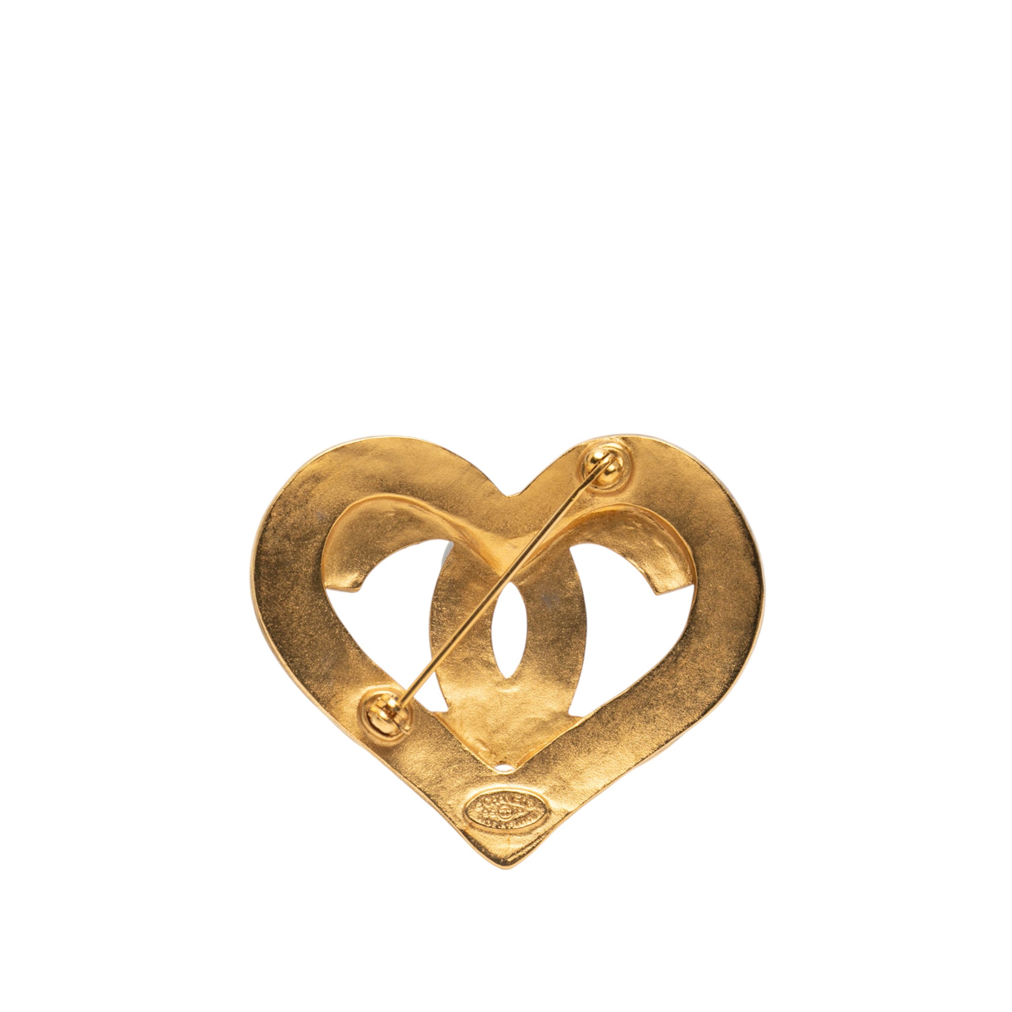 Chanel Gold Plated CC Heart Brooch