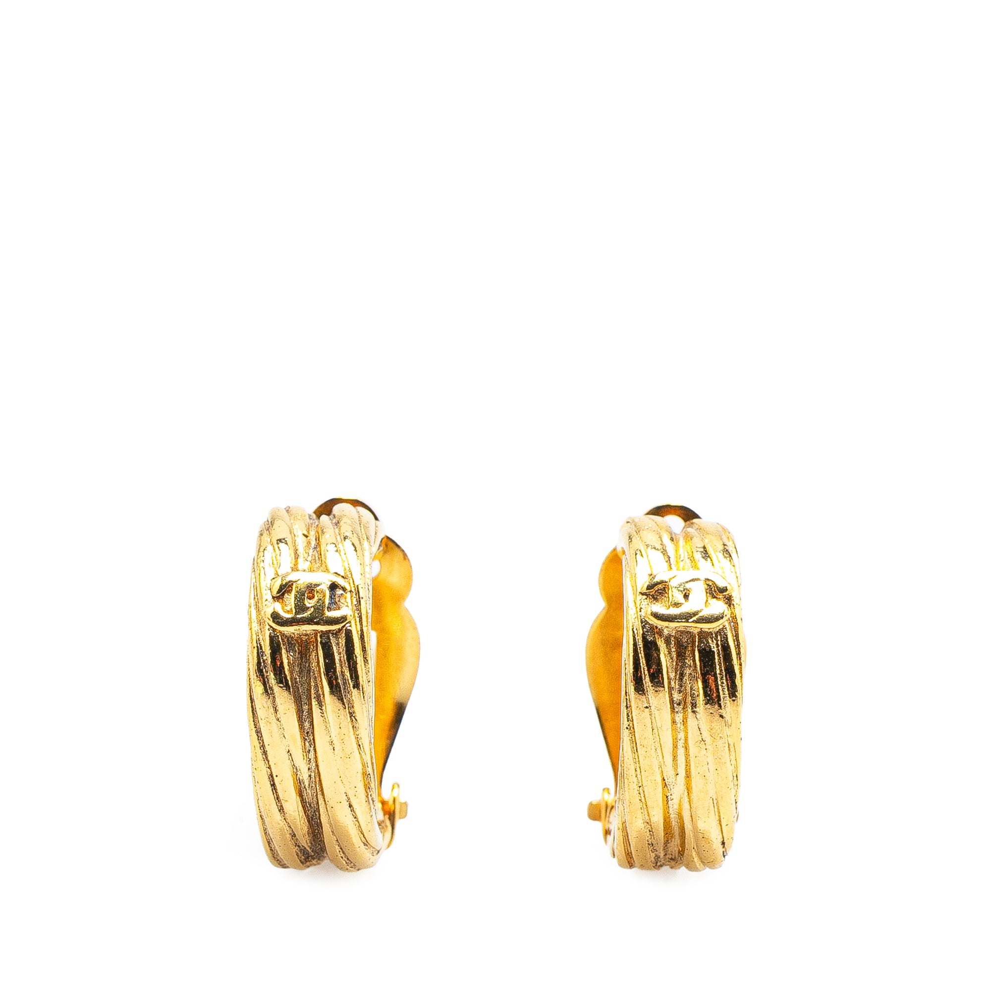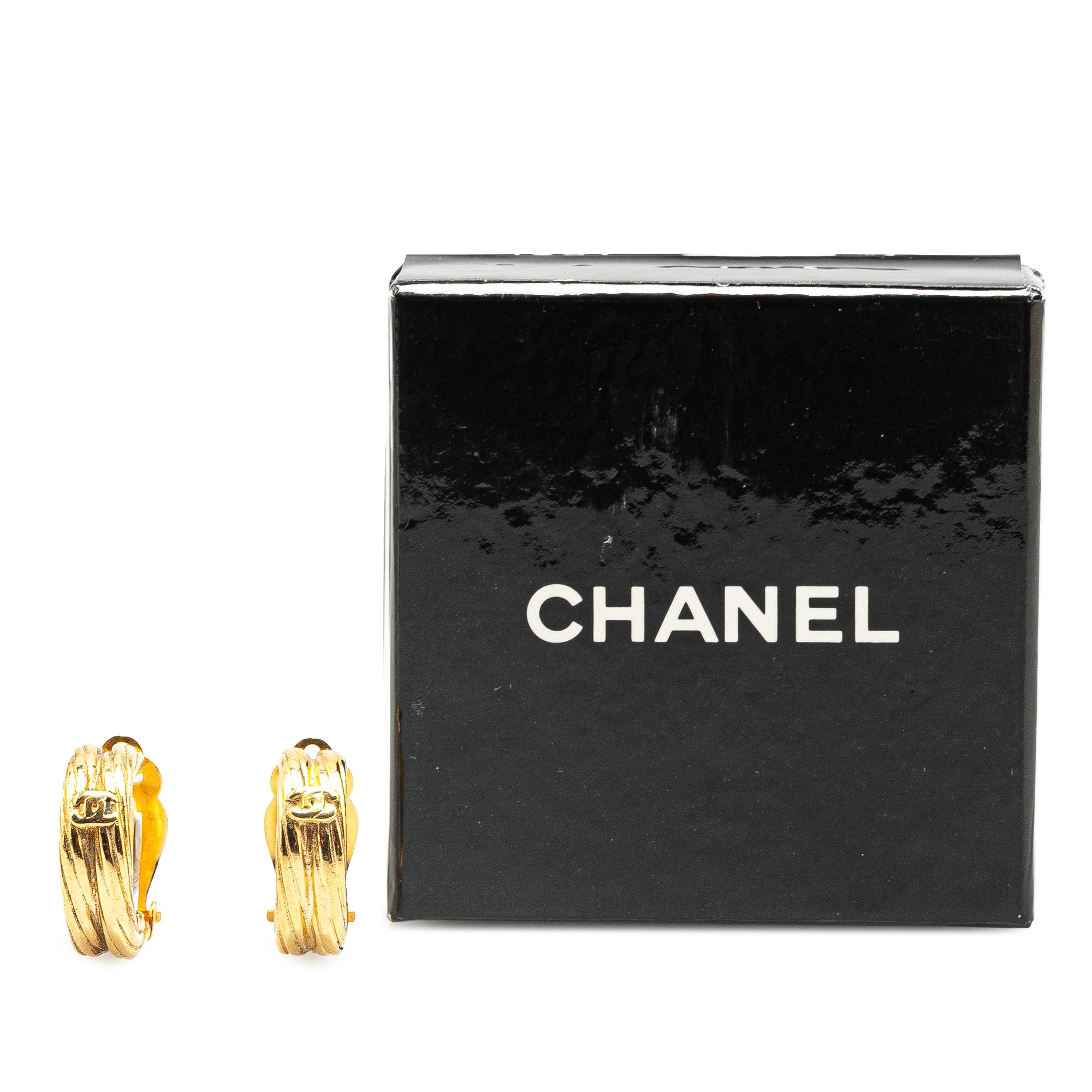 Chanel Gold Plated CC Hoop Clip on Earrings