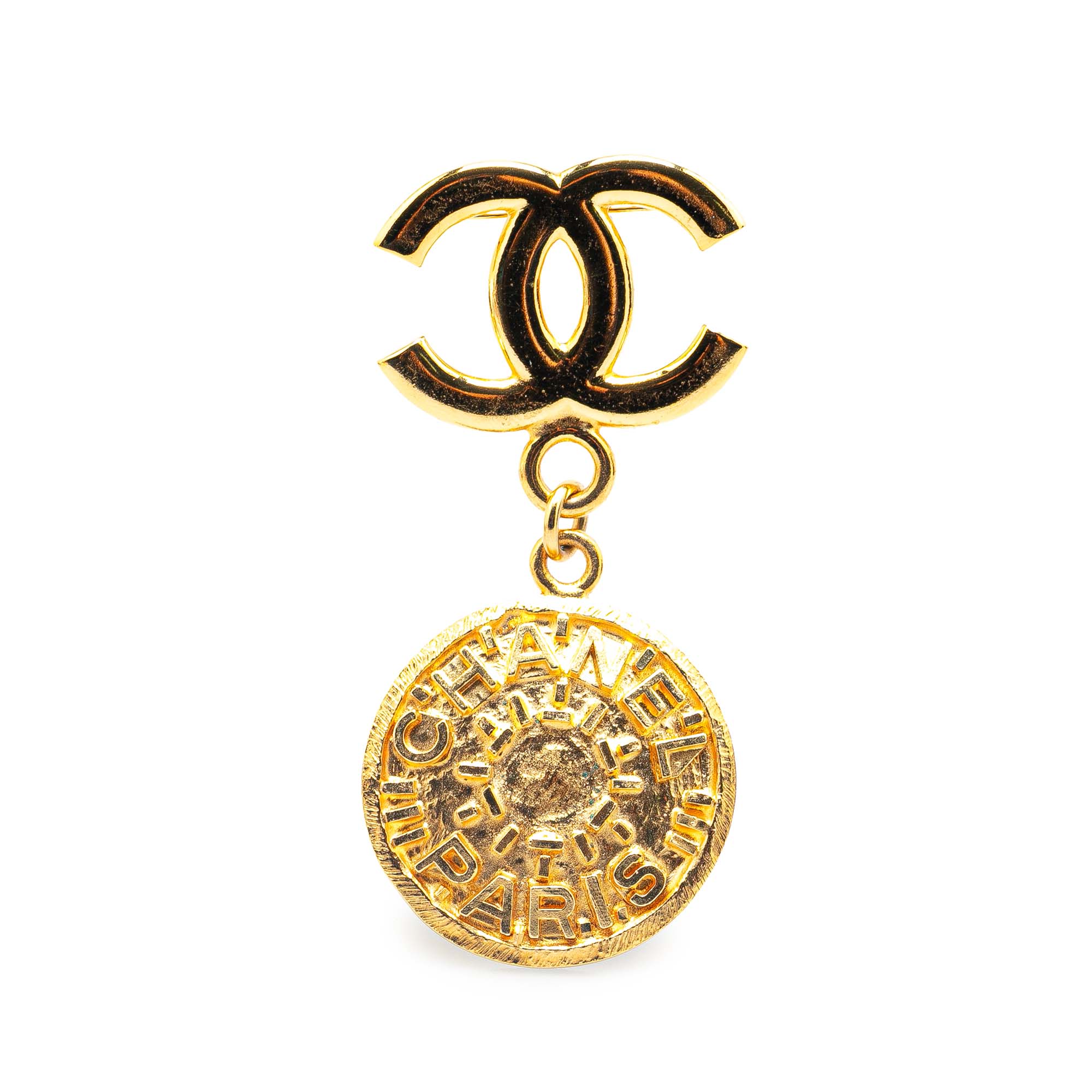 Chanel Gold Plated CC Medallion Brooch