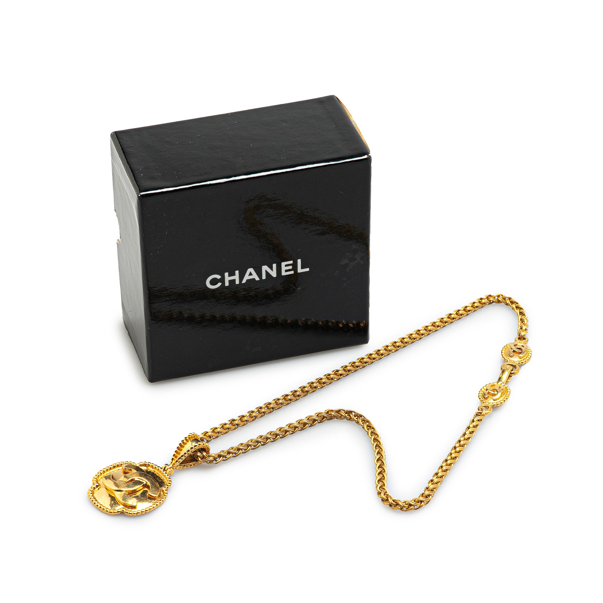 Chanel Gold Plated CC Medallion Clover Pendant Necklace