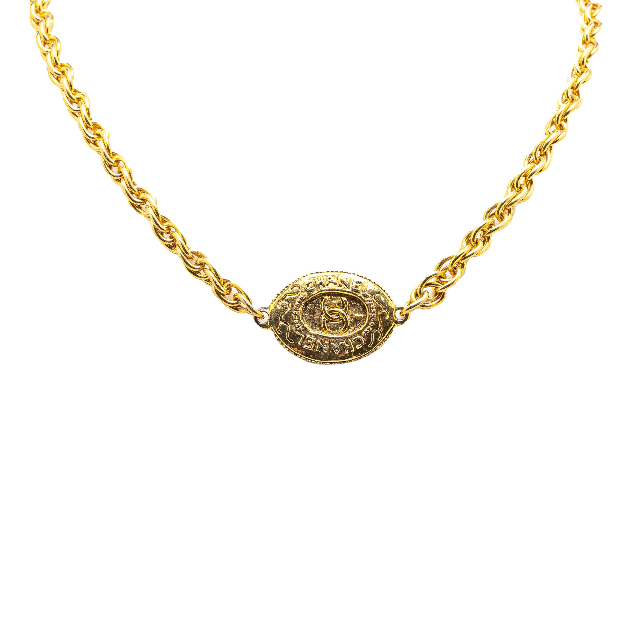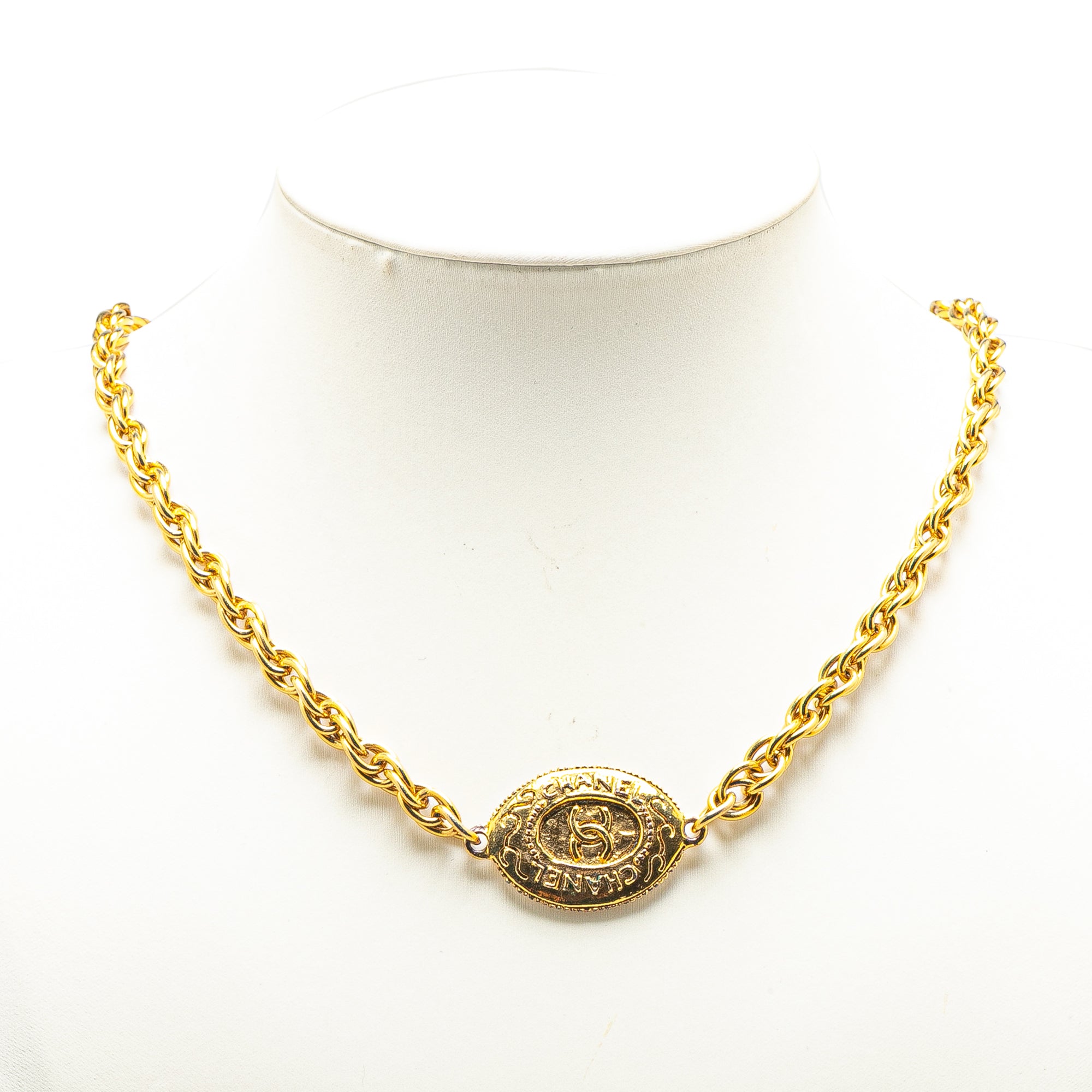 This necklace features a gold-tone medallion pendant and a gold-tone chain. Retail Price: 975.00