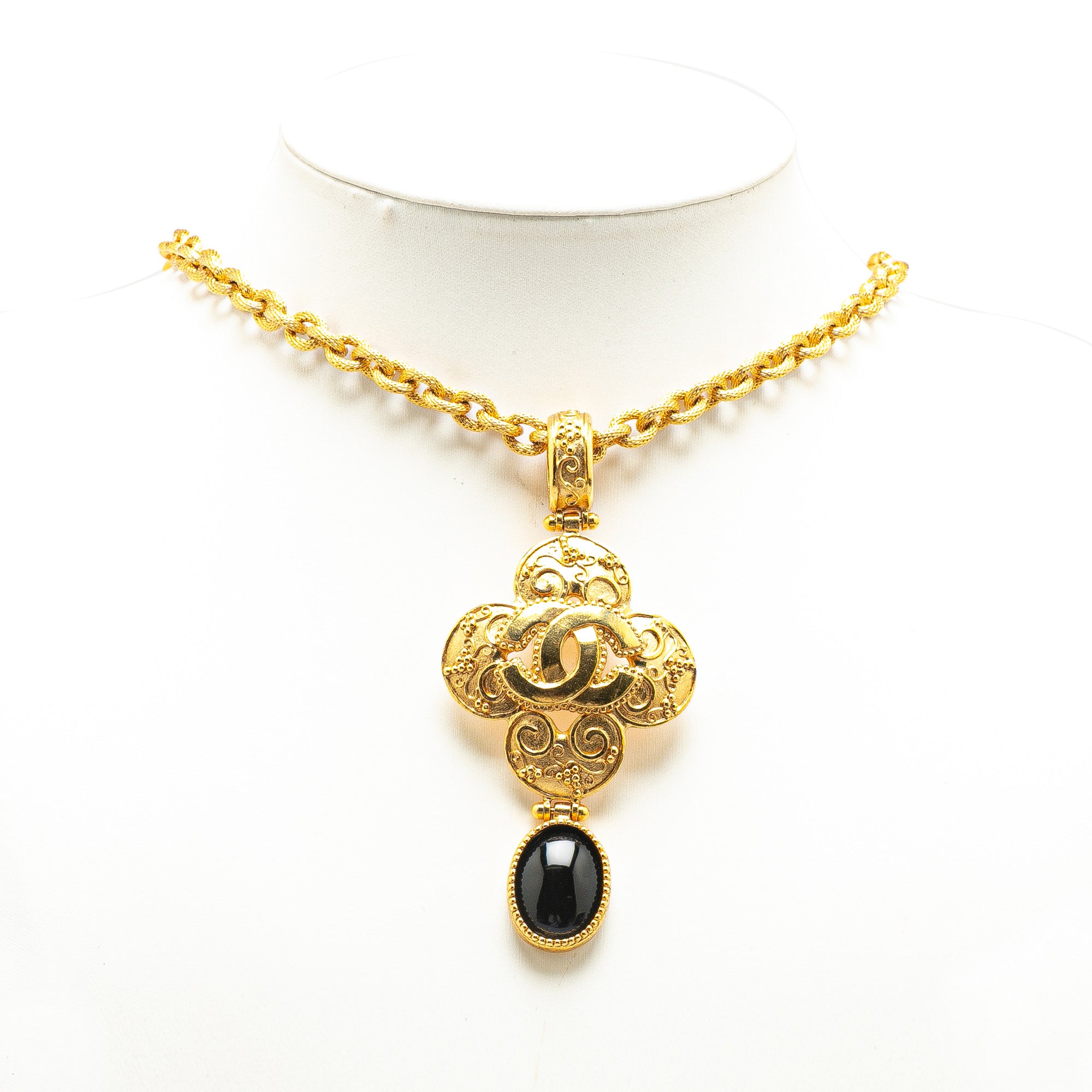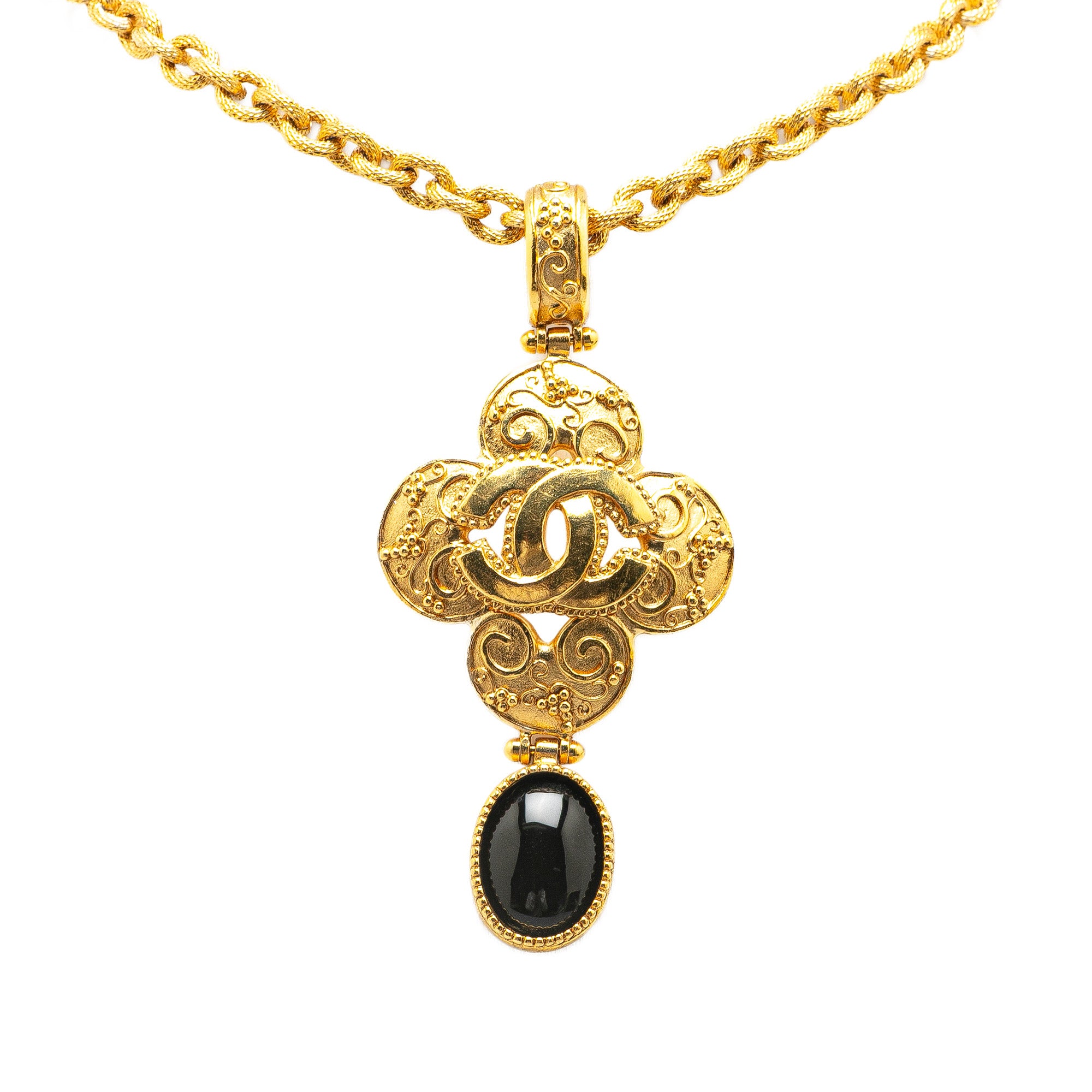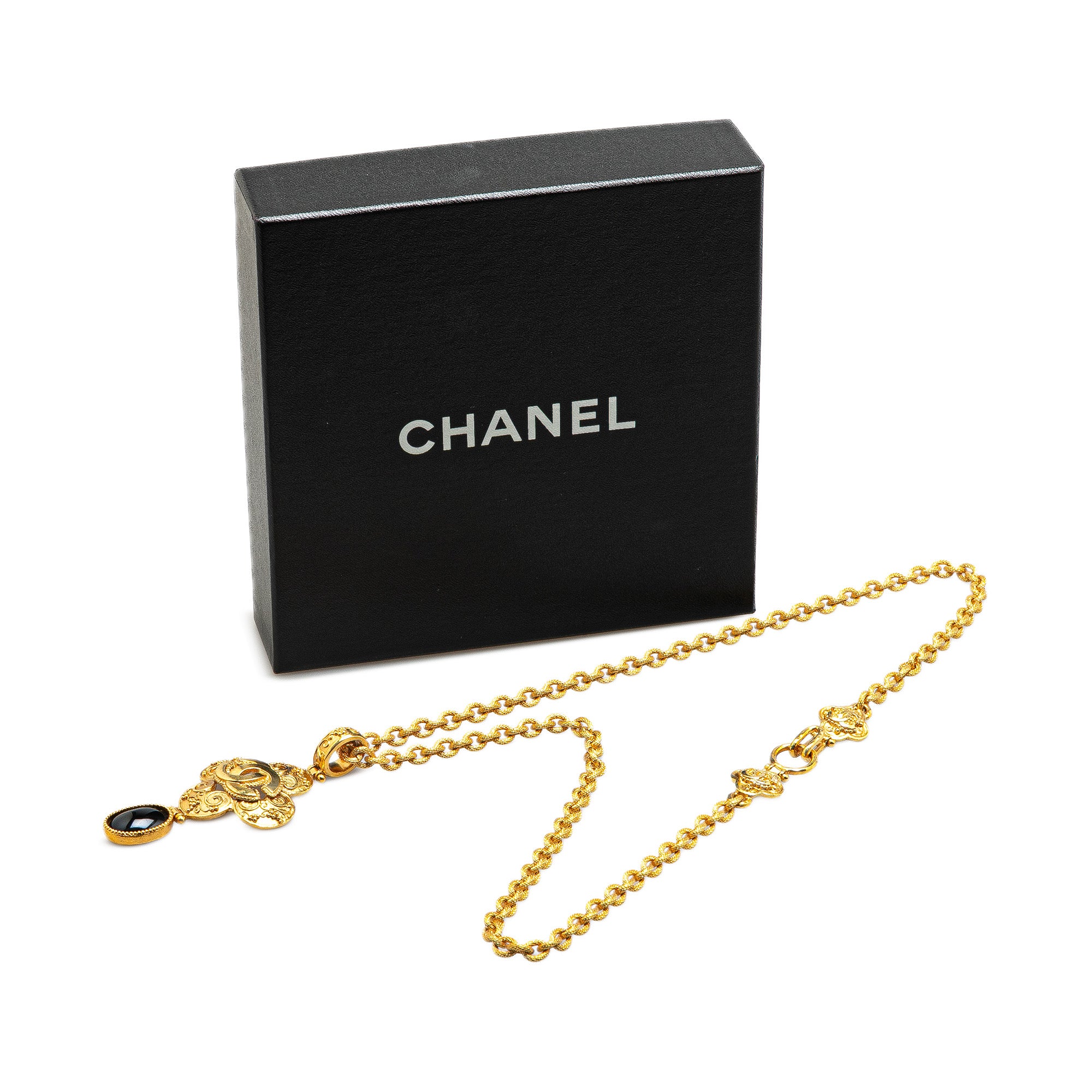 Chanel Gold Plated CC Resin Clover Pendant Necklace