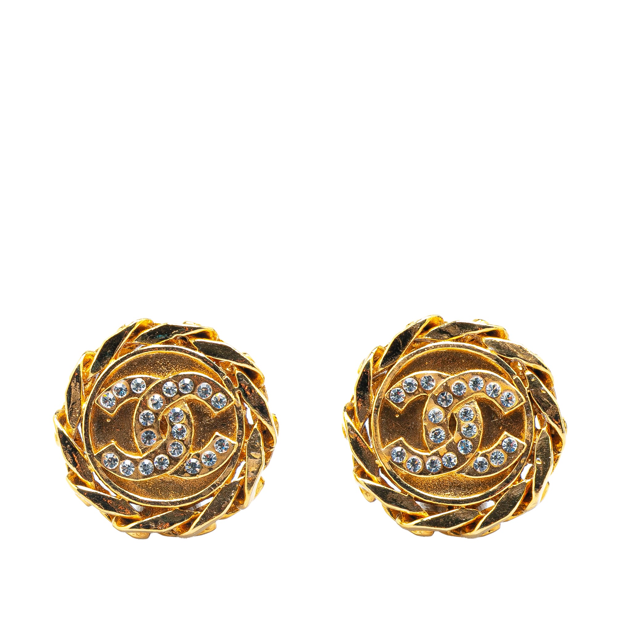Chanel Gold Plated CC Rhinestones Clip on Earrings