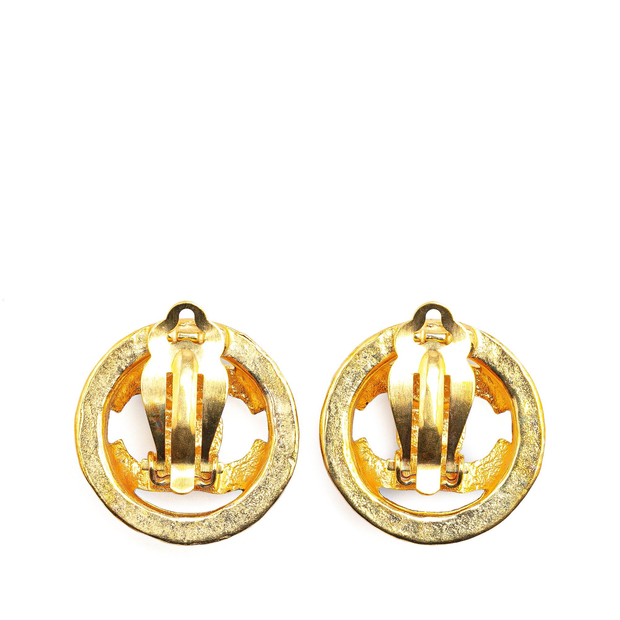 Chanel Gold Plated CC Round Clip on Earrings