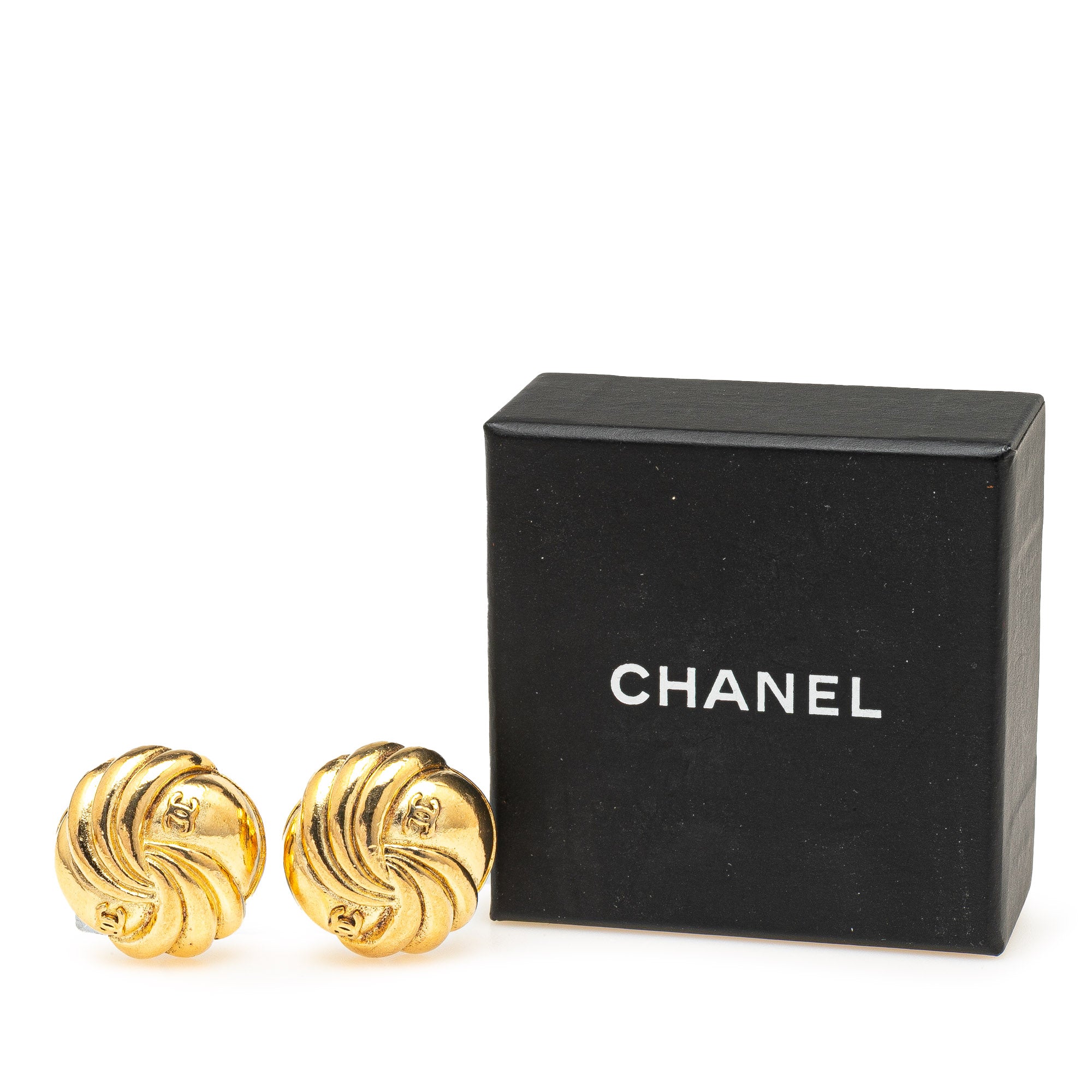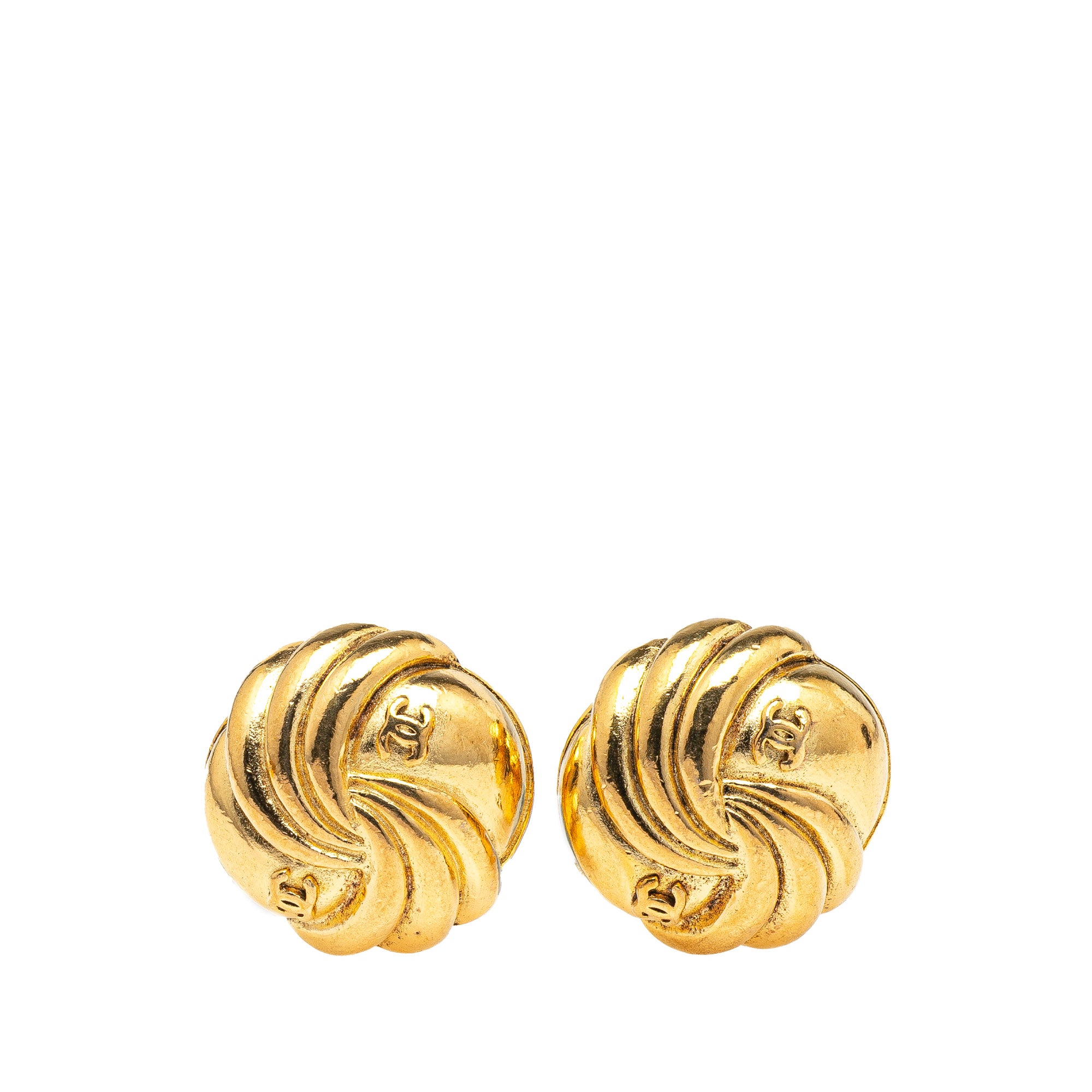Chanel Gold Plated CC Round Clip on Earrings