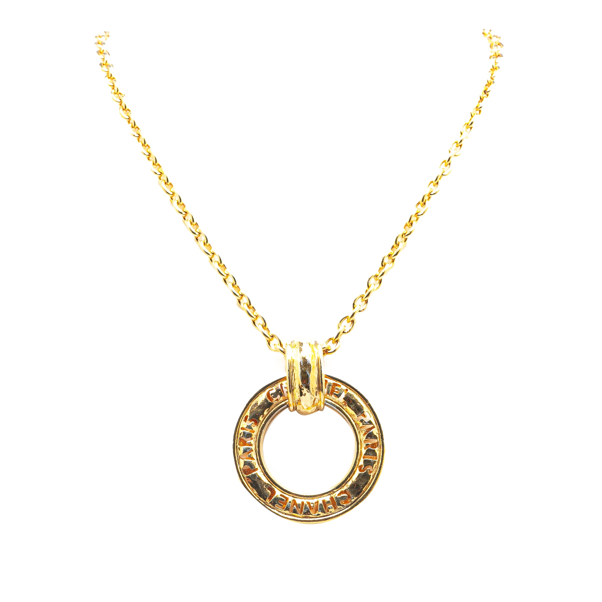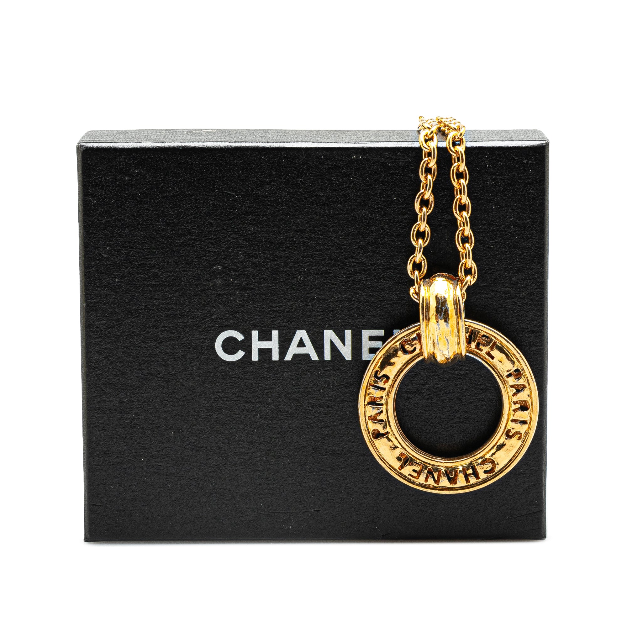 Chanel Gold Plated Circle Logo Pendant Necklace