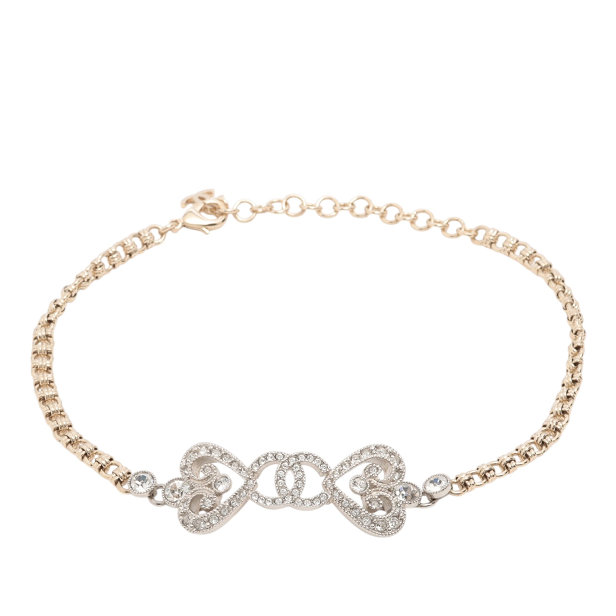 Chanel Gold Plated Crystal Hearts Choker Necklace