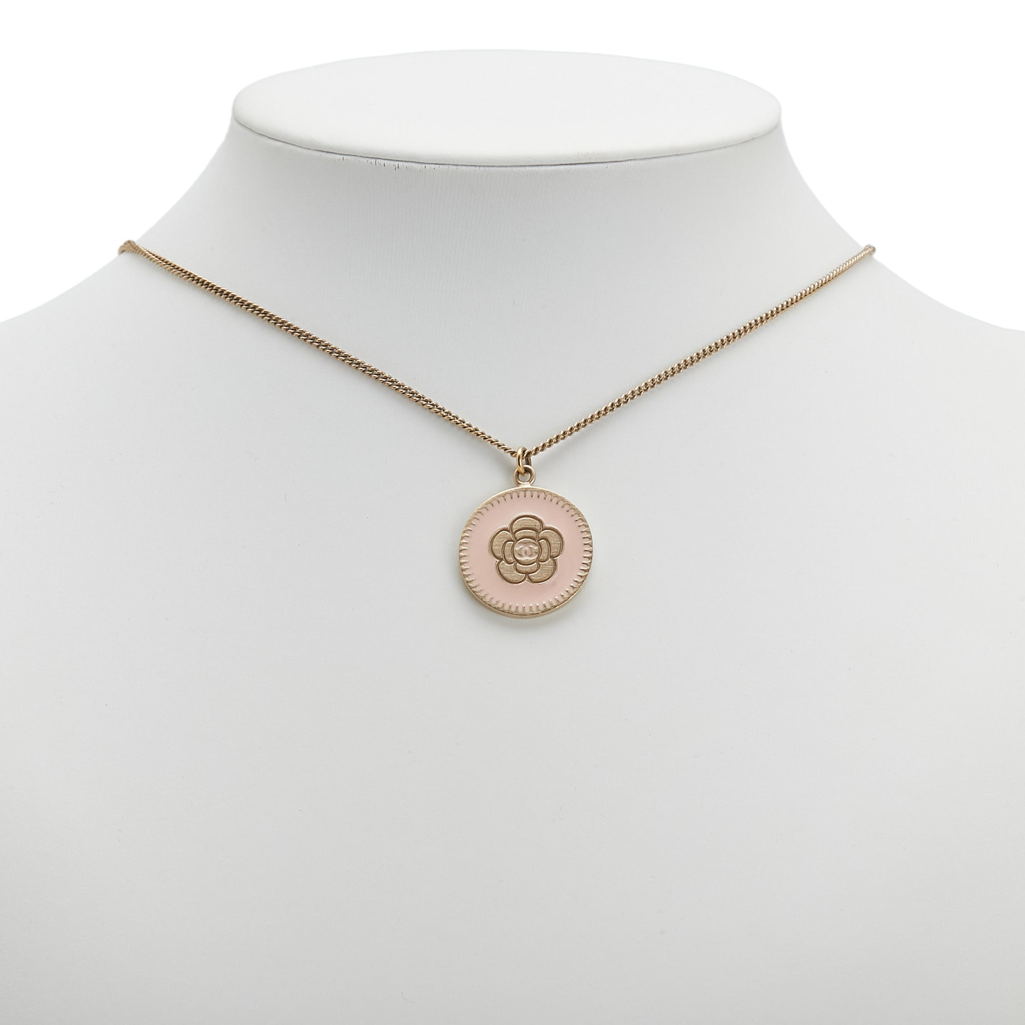 Chanel Gold Plated Enamel Camelia Pendant Necklace
