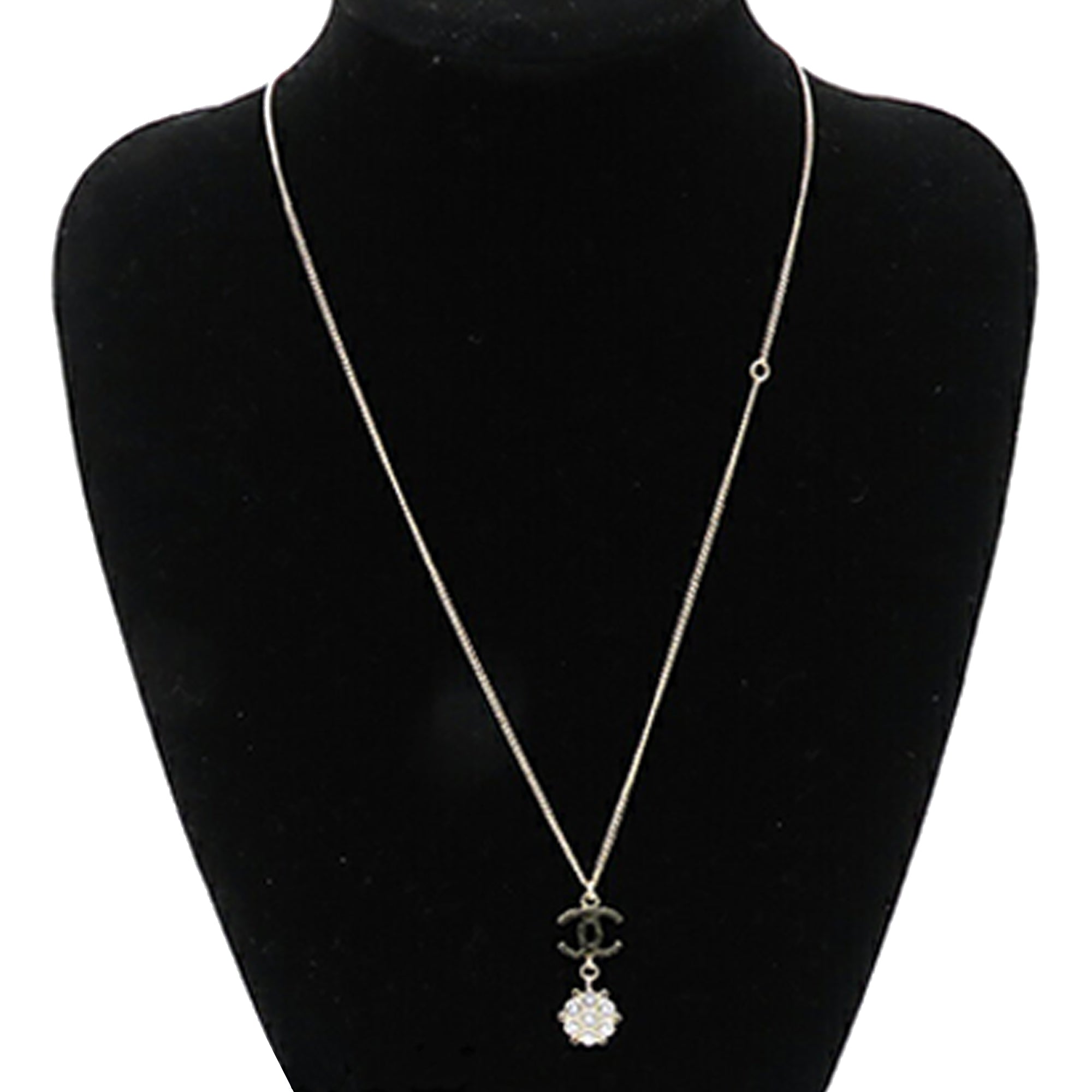 Chanel Gold Plated Enamel CC and Rhinestones Flower Pendant Necklace