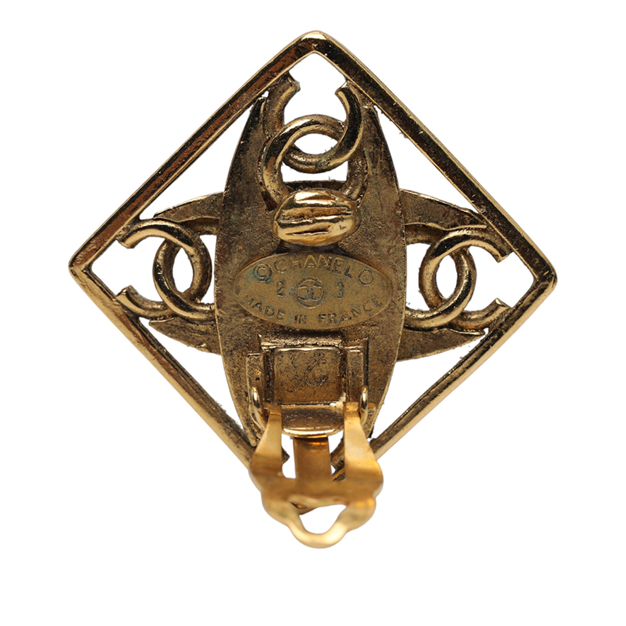 Chanel Gold Plated Faux Pearl CC Diamond Shaped Clip On Earrings