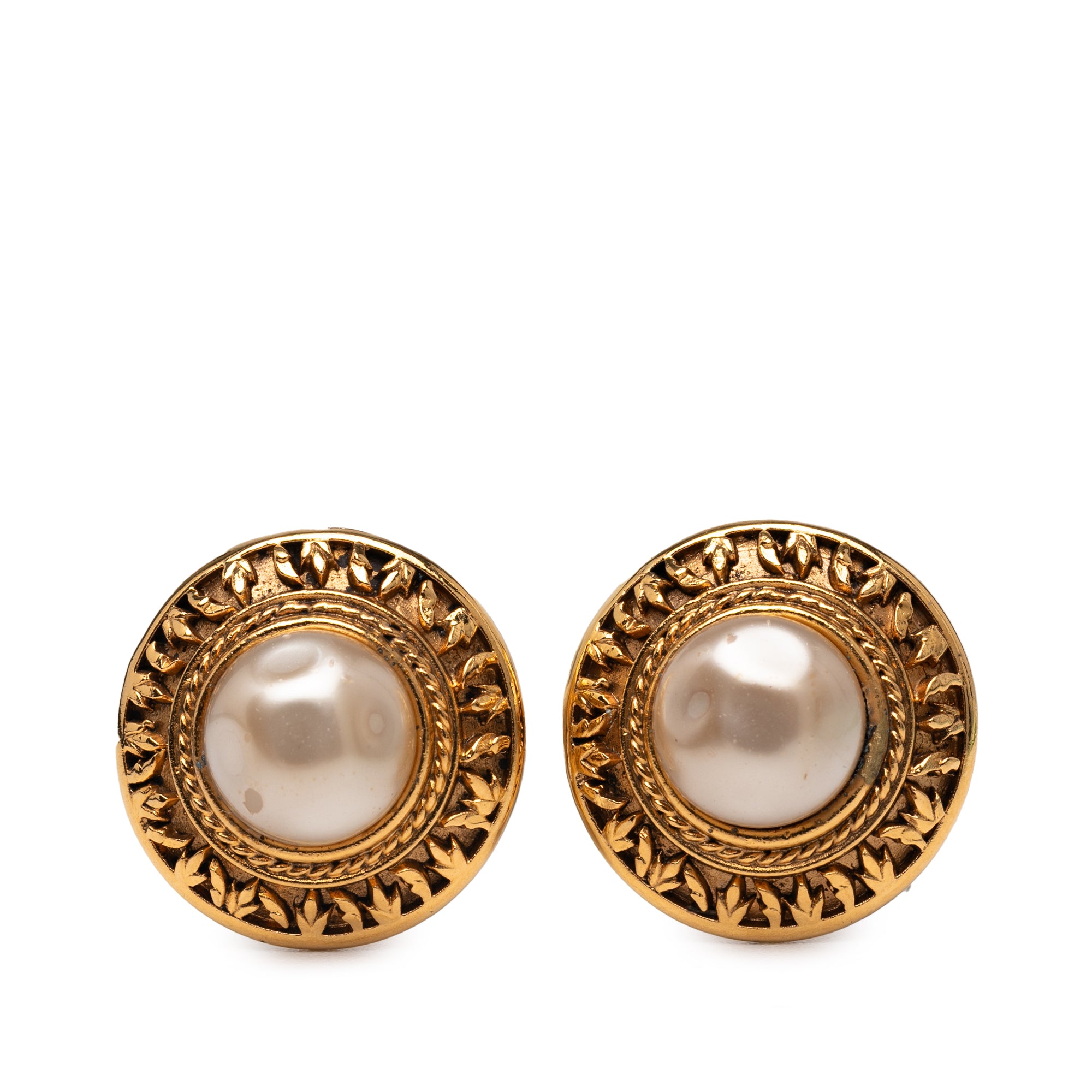 Chanel Gold Plated Faux Pearl Clip On Earrings