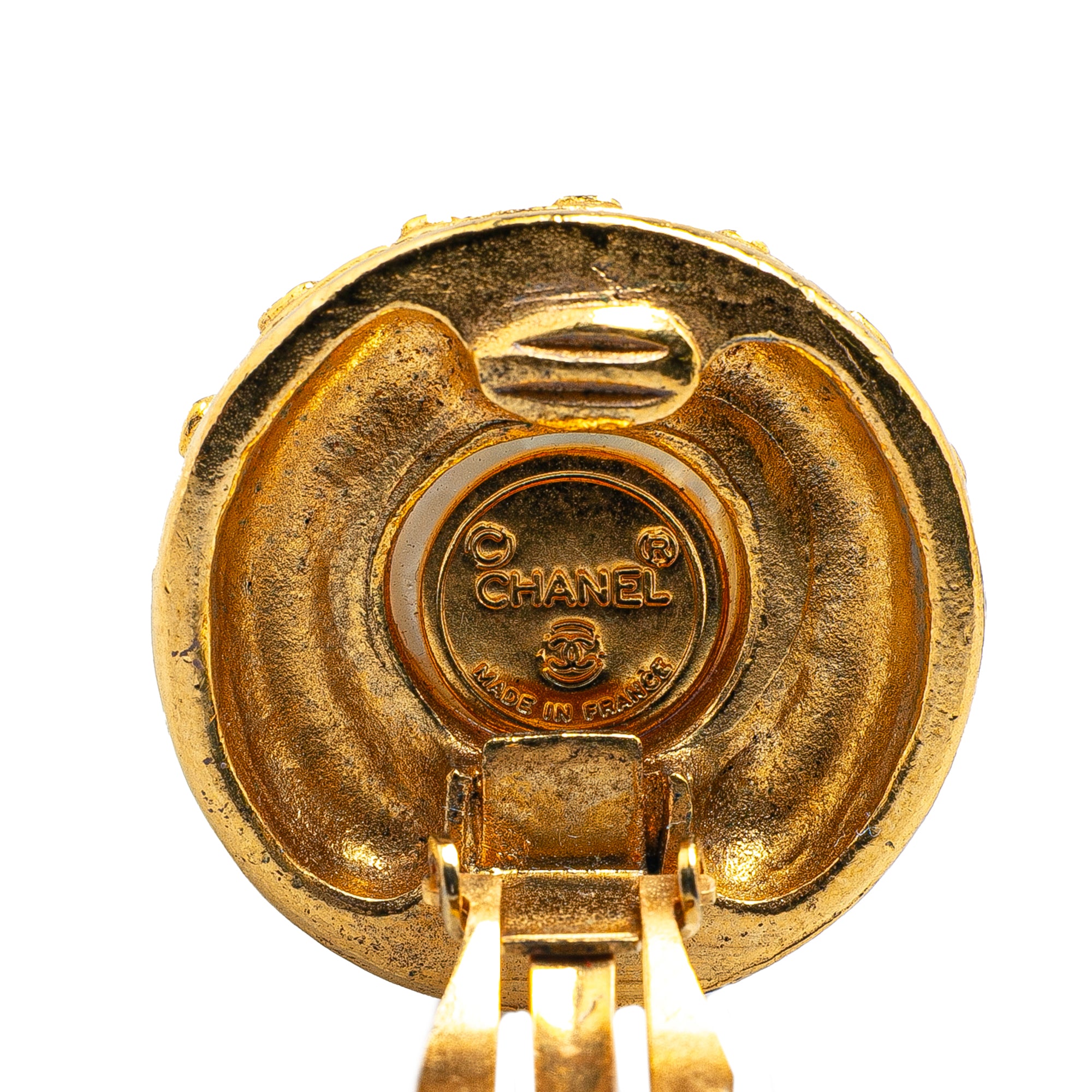 Chanel Gold Plated Faux Pearl Round Clip on Earrings