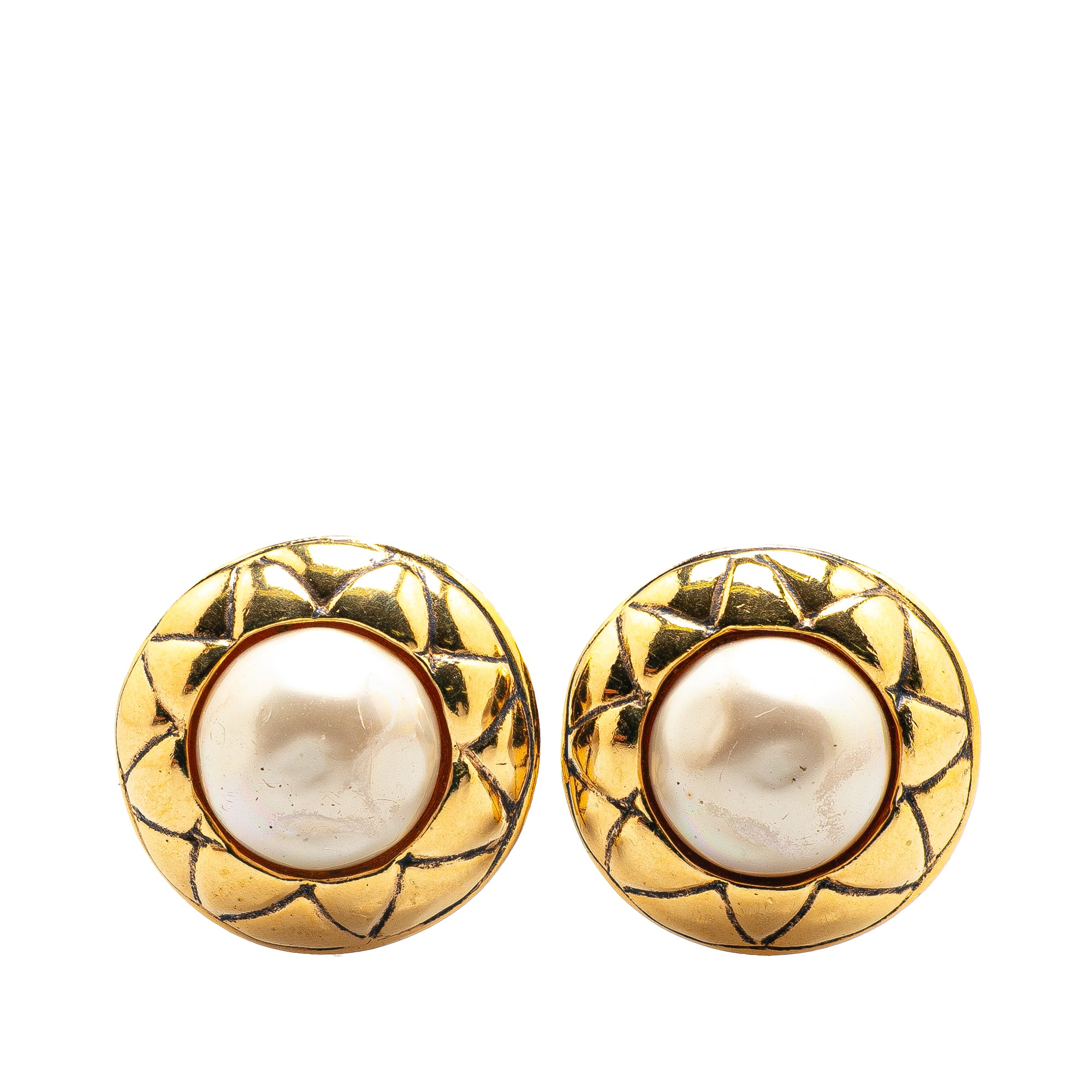 Chanel Gold Plated Faux Pearl Round Clip on Earrings