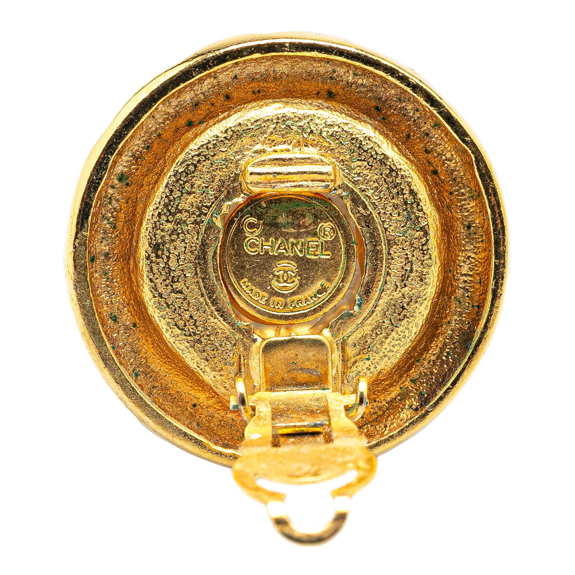 Chanel Gold Plated Faux Pearl Round Clip on Earrings