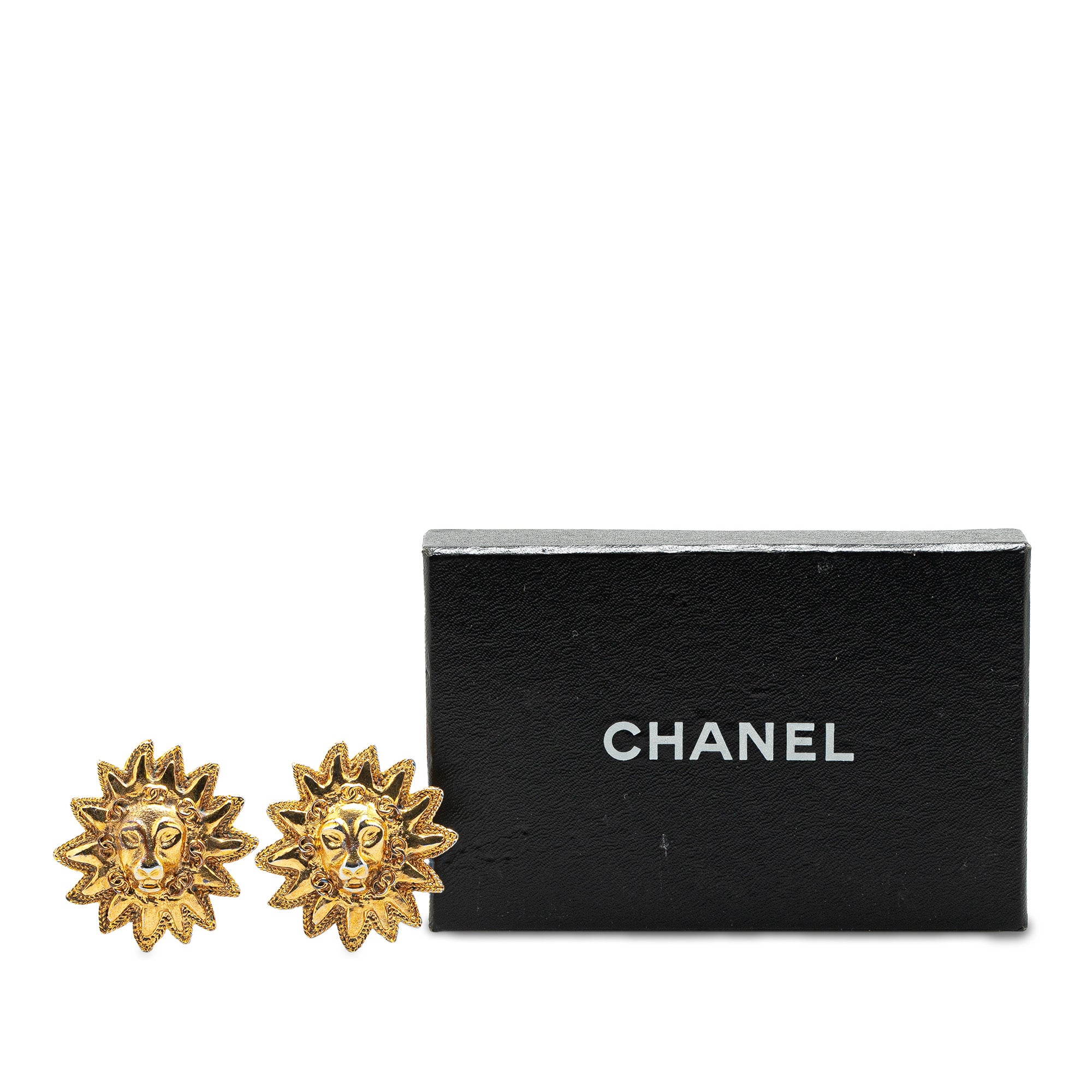 Chanel Gold Plated Lion Motif Clip On Earrings