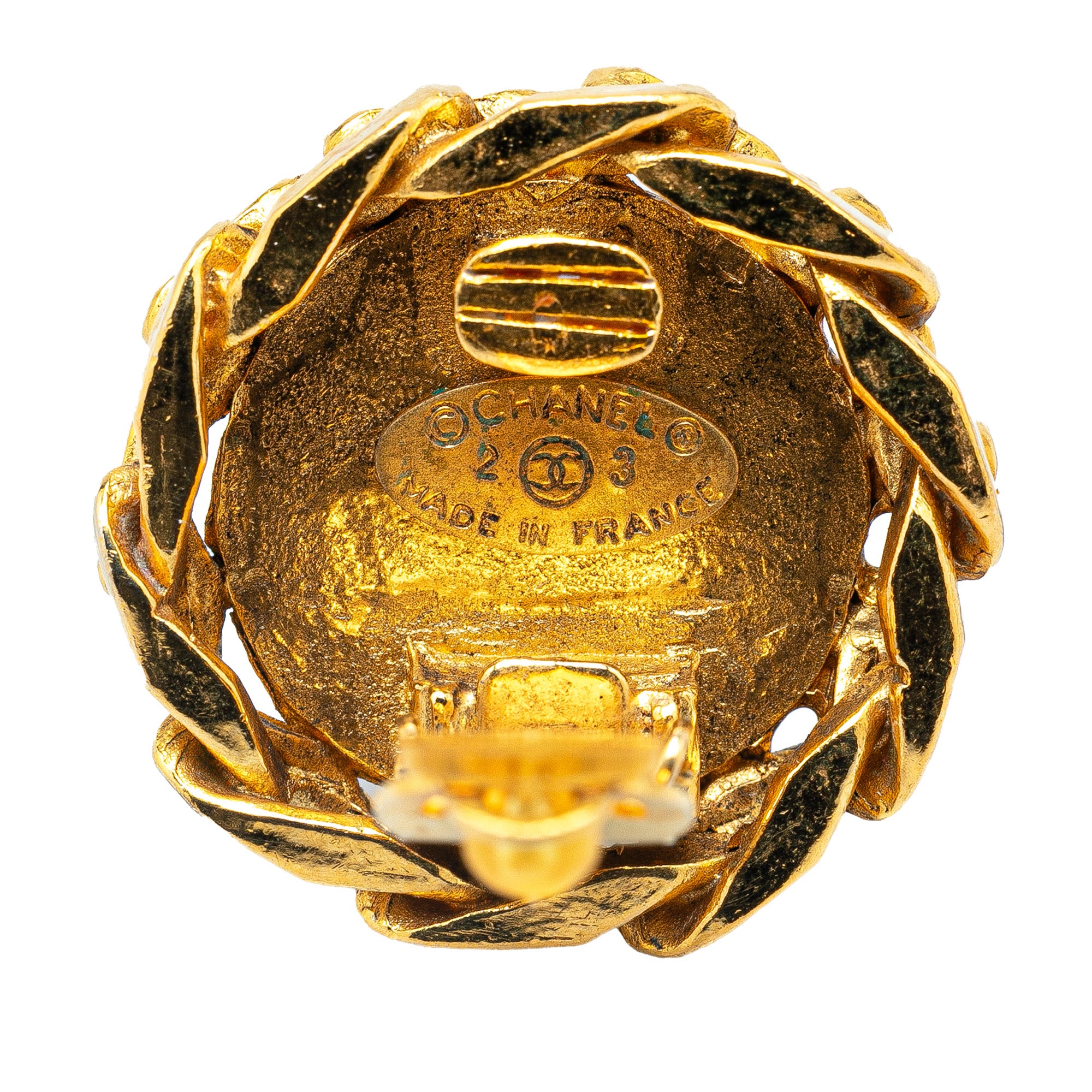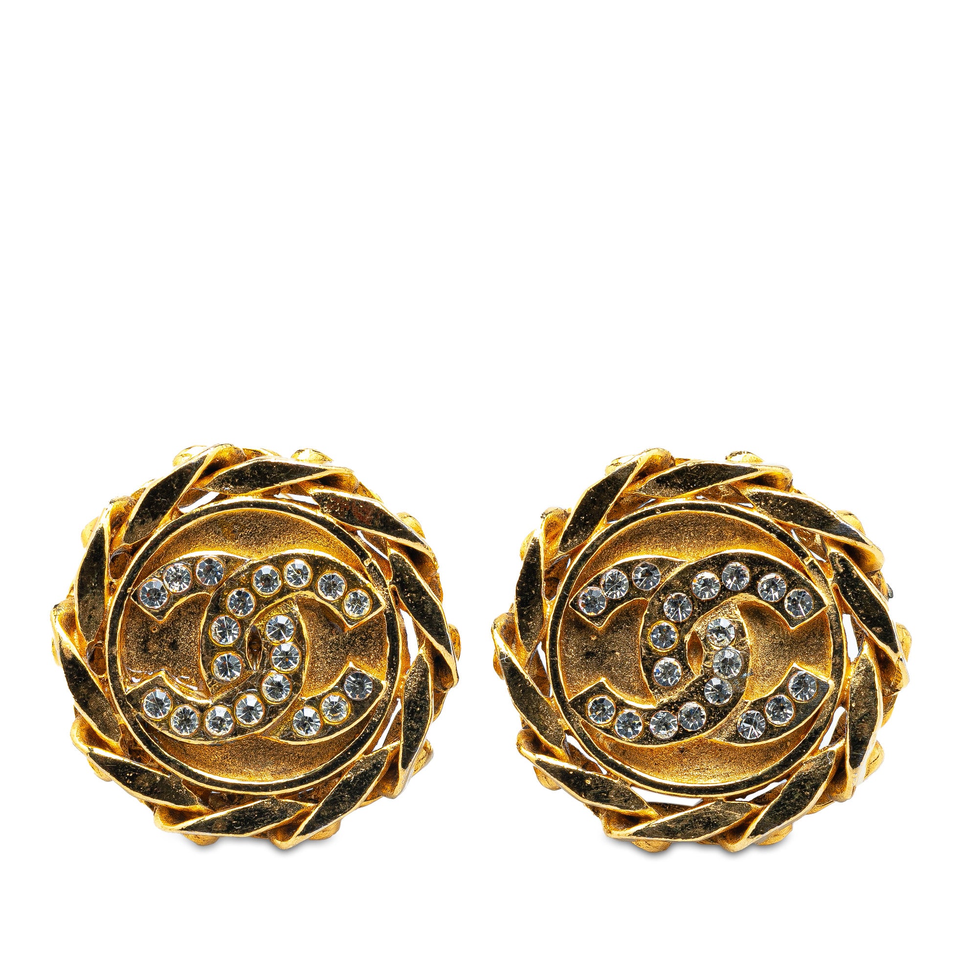 Chanel Gold Plated Rhinestone CC Clip On Earrings