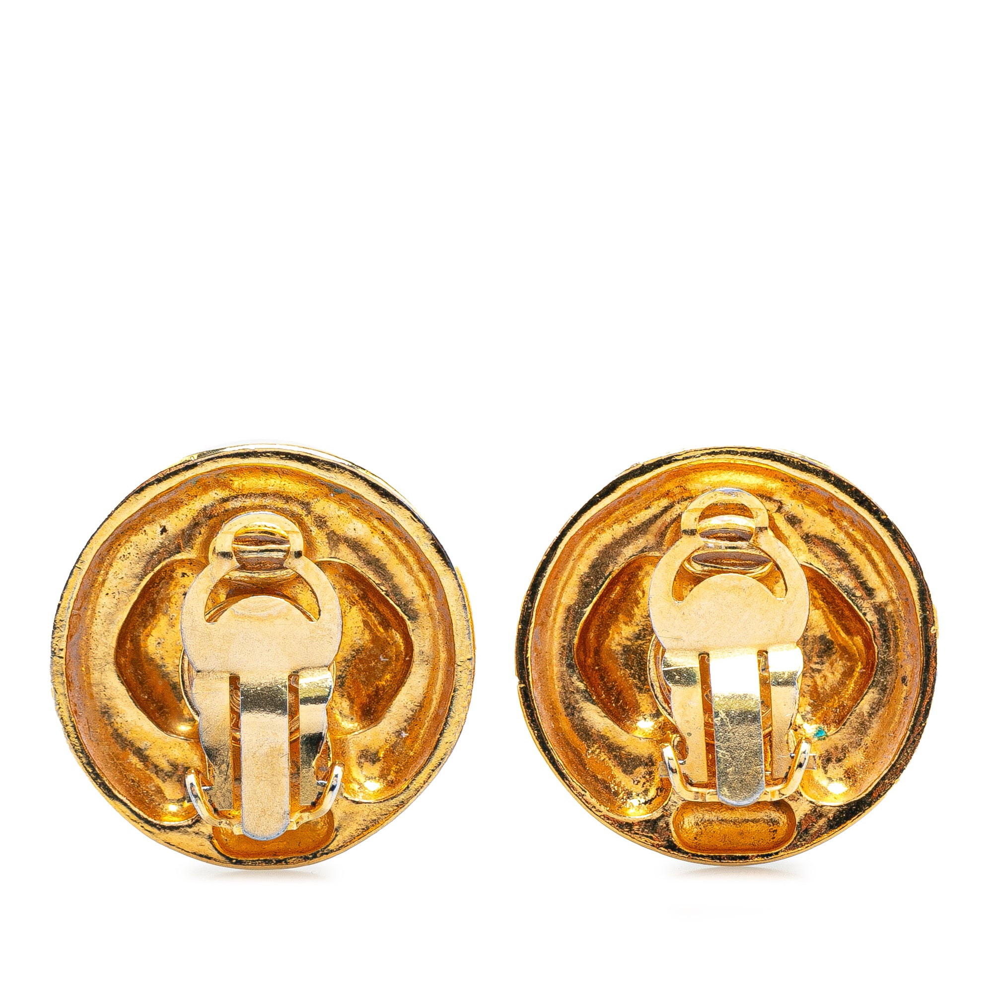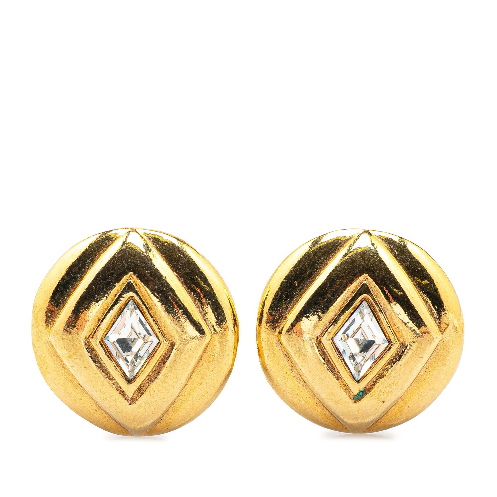 Chanel Gold Plated Rhinestones Round Clip on Earrings