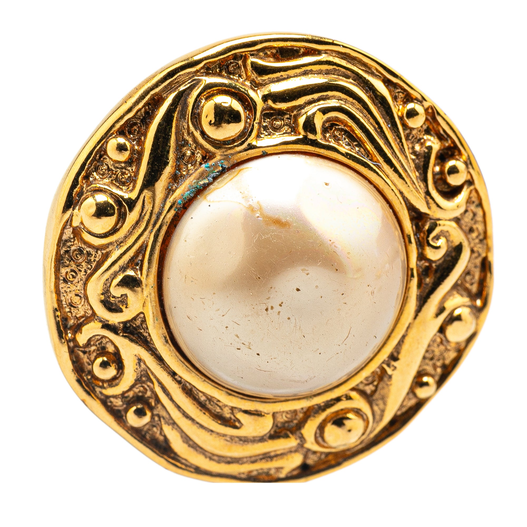 Chanel Gold Plated Round Faux Pearl Clip on Earrings