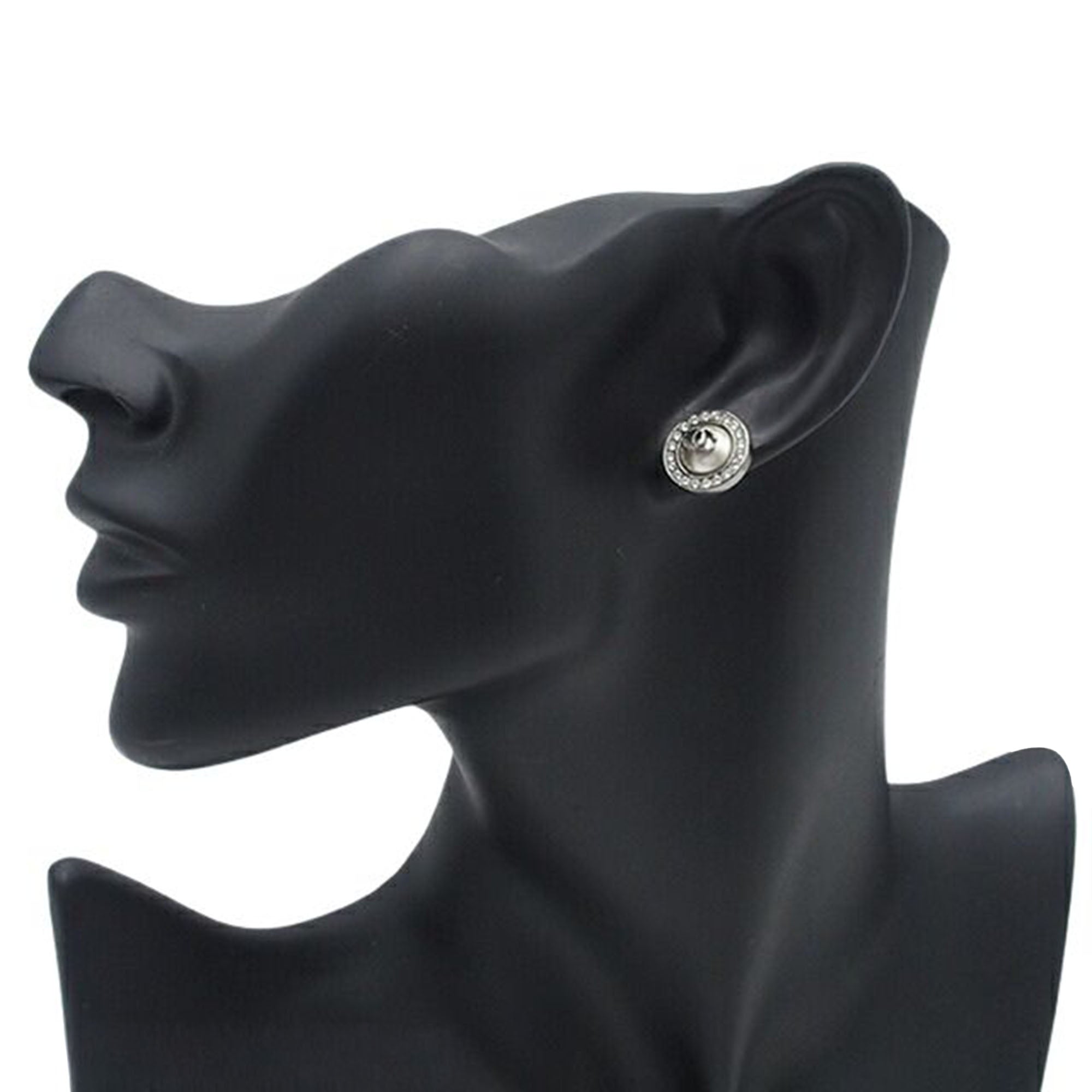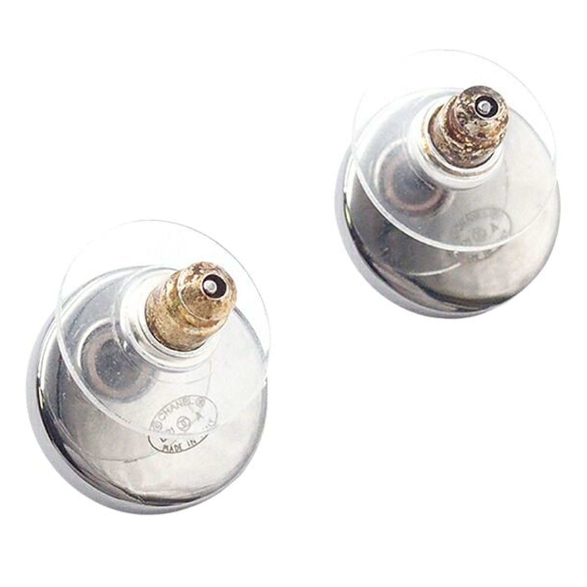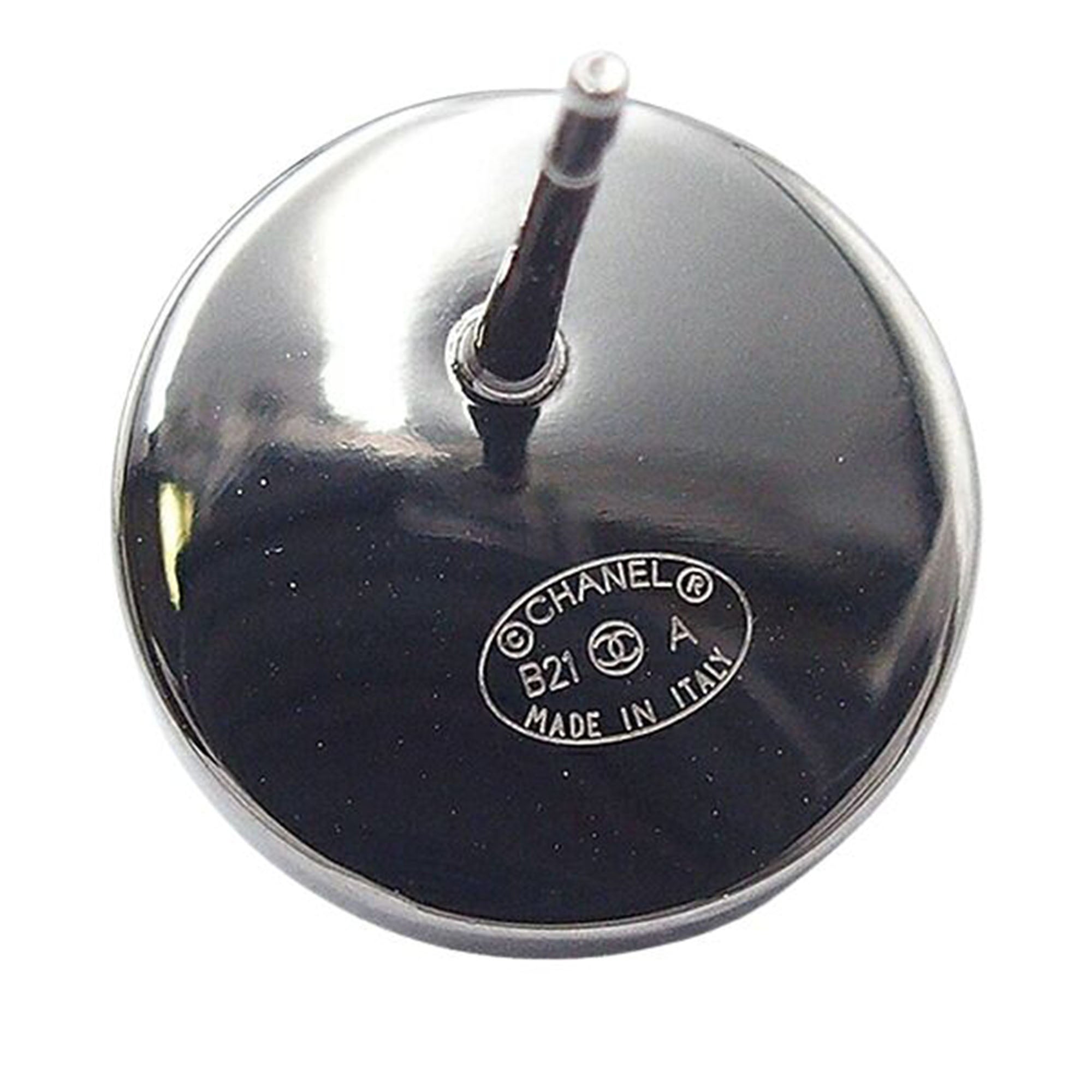 Chanel Gunmetal Plated CC Faux Pearl and Crystal Round Push Back Earrings Secondhand