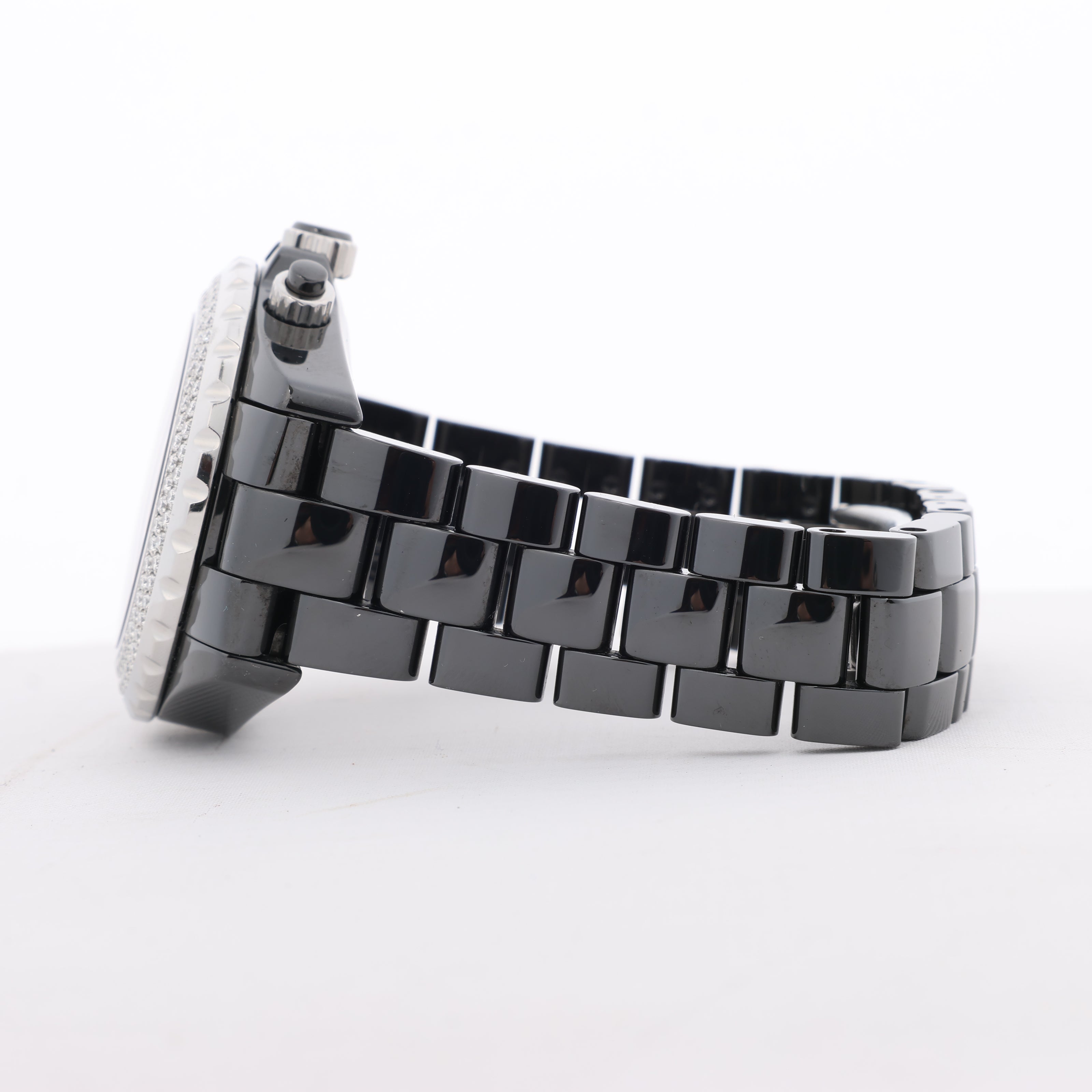 Brand: Chanel Model: J12Reference: H1009Condition: ExcellentCondition Details: Light signs of use, including subtle surface marks barely visible to the eye. Please see photos for the exact condition.Dial Colour: BlackCase Material: Stainless steelStarp Colour: BlackStrap material: CeramicMovement: AutomaticFace Diameter: 41 mmApprox. max circumference: 18.5 cmComes With: Box, Certificate, Service card